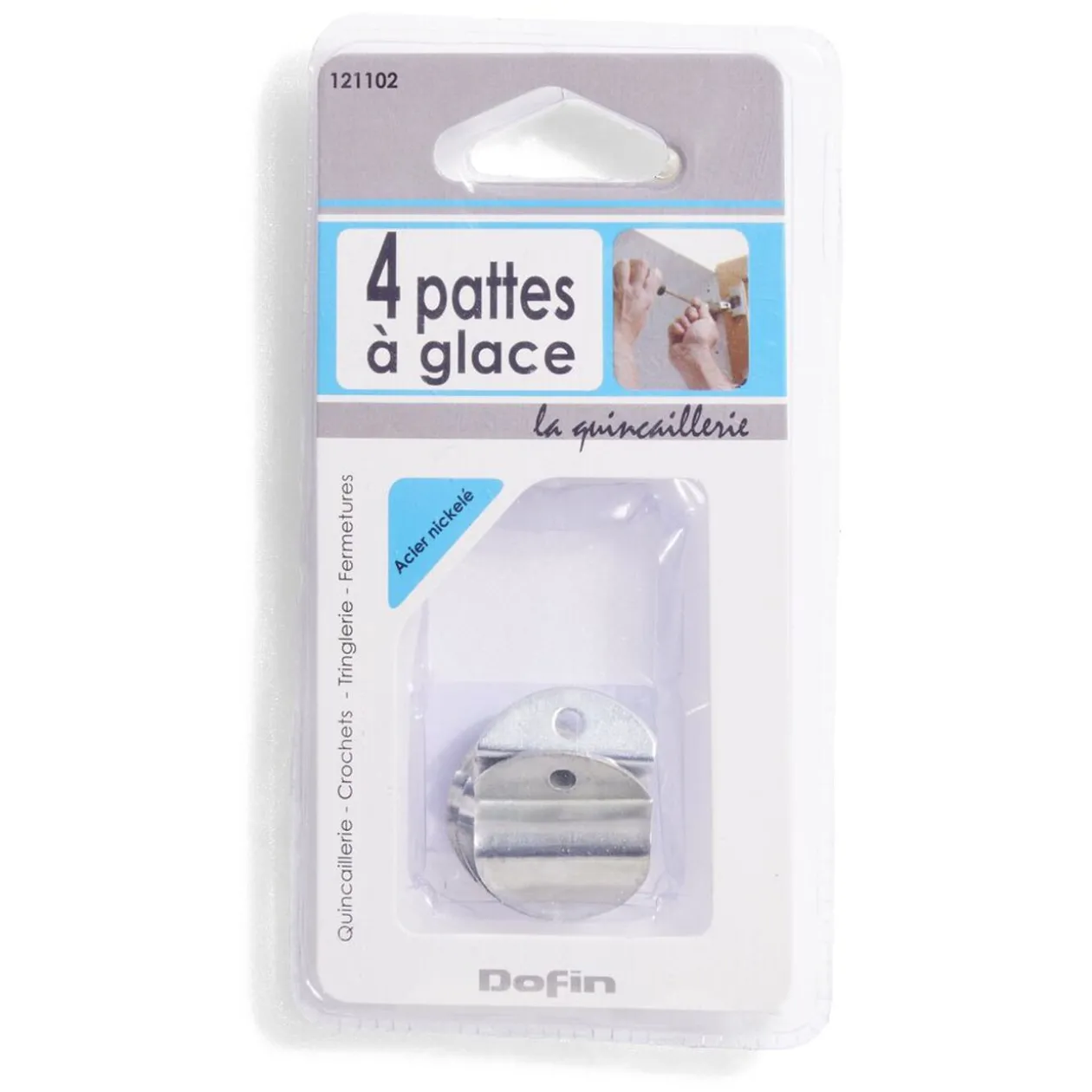 Lot de 4 pattes à glace en acier nickelé. Idéal pour la fixation de miroirs, panneaux muraux.