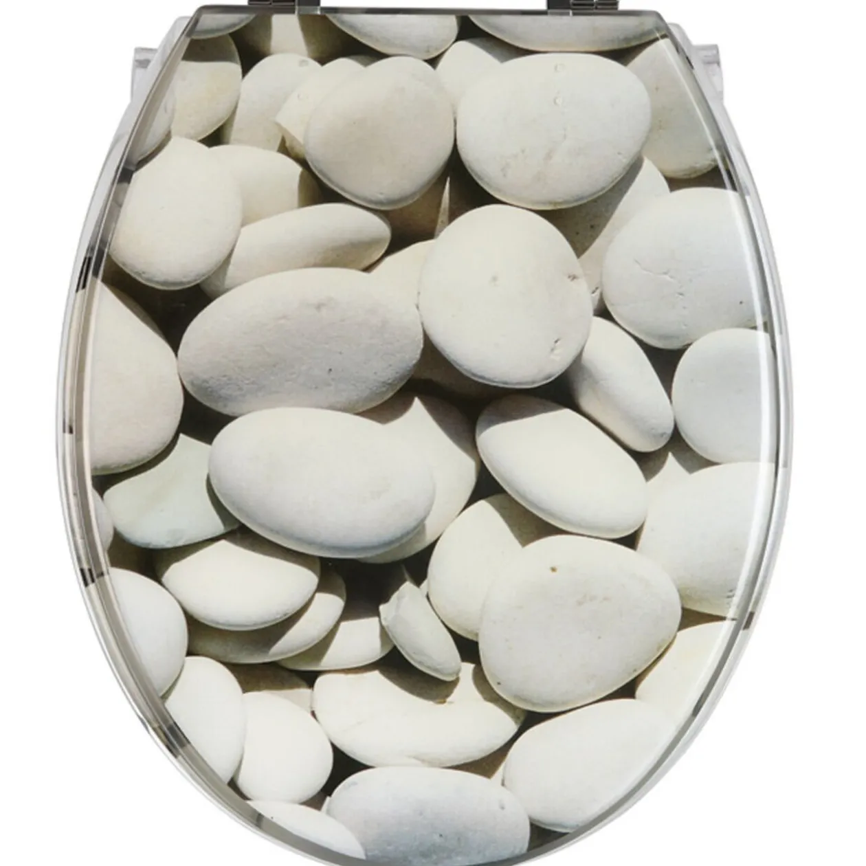 Abattant WC motif galets, dim. 42×35 cm, résine, avec fixations.