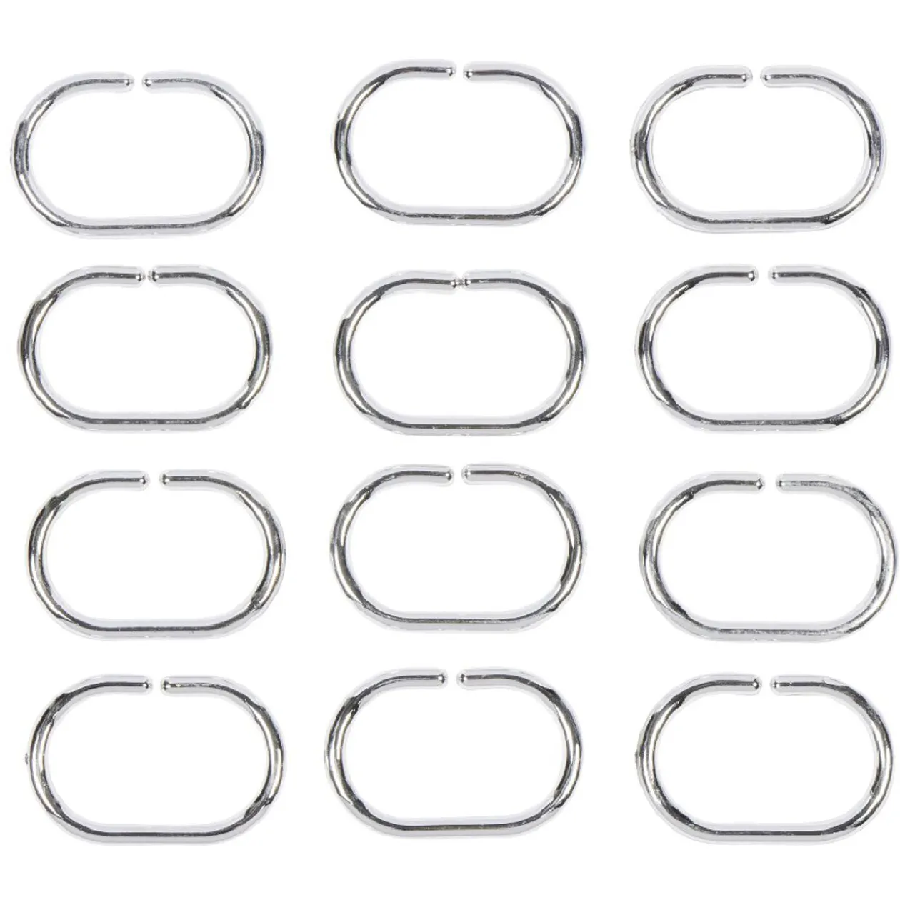 Lot de 12 anneaux de douche gris de forme ovale.