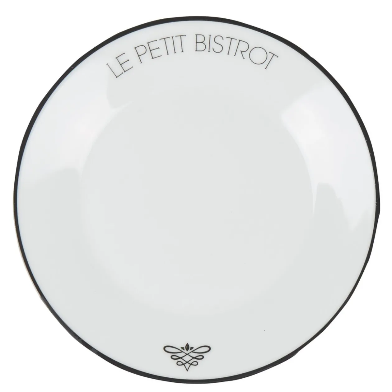 Assiette à dessert blanche et noire « Le petit bistrot », dim. Ø19xh.1,9 cm, porcelaine.