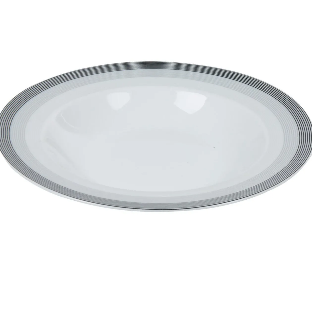 Assiette creuse ronde blanche et grise Sérénité Rayures, dim. Ø22xh.3 cm, porcelaine.