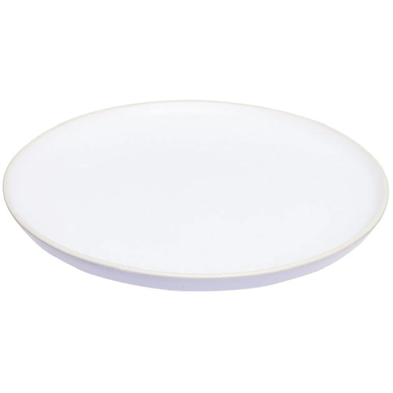Assiette plate en faïence blanc avec liseré crème. Idéale pour apporter de la chaleur à votre décoration de table.