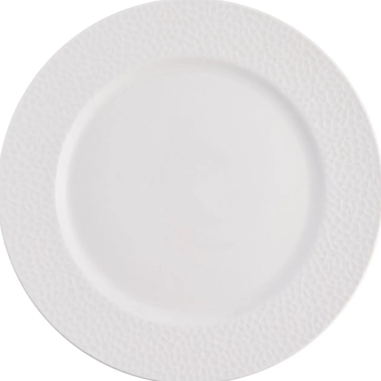 Lot de 4 assiettes plates en porcelaine rondes embossées de couleur blanche unie.