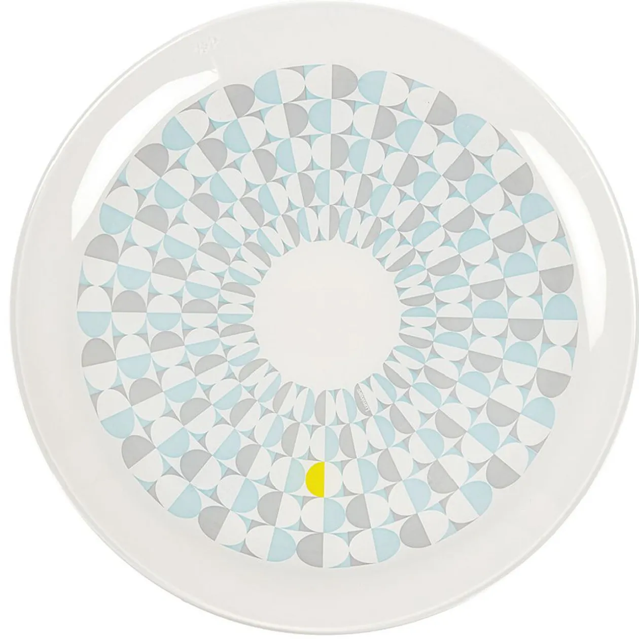 Assiette plate en verre aux motifs géométriques.