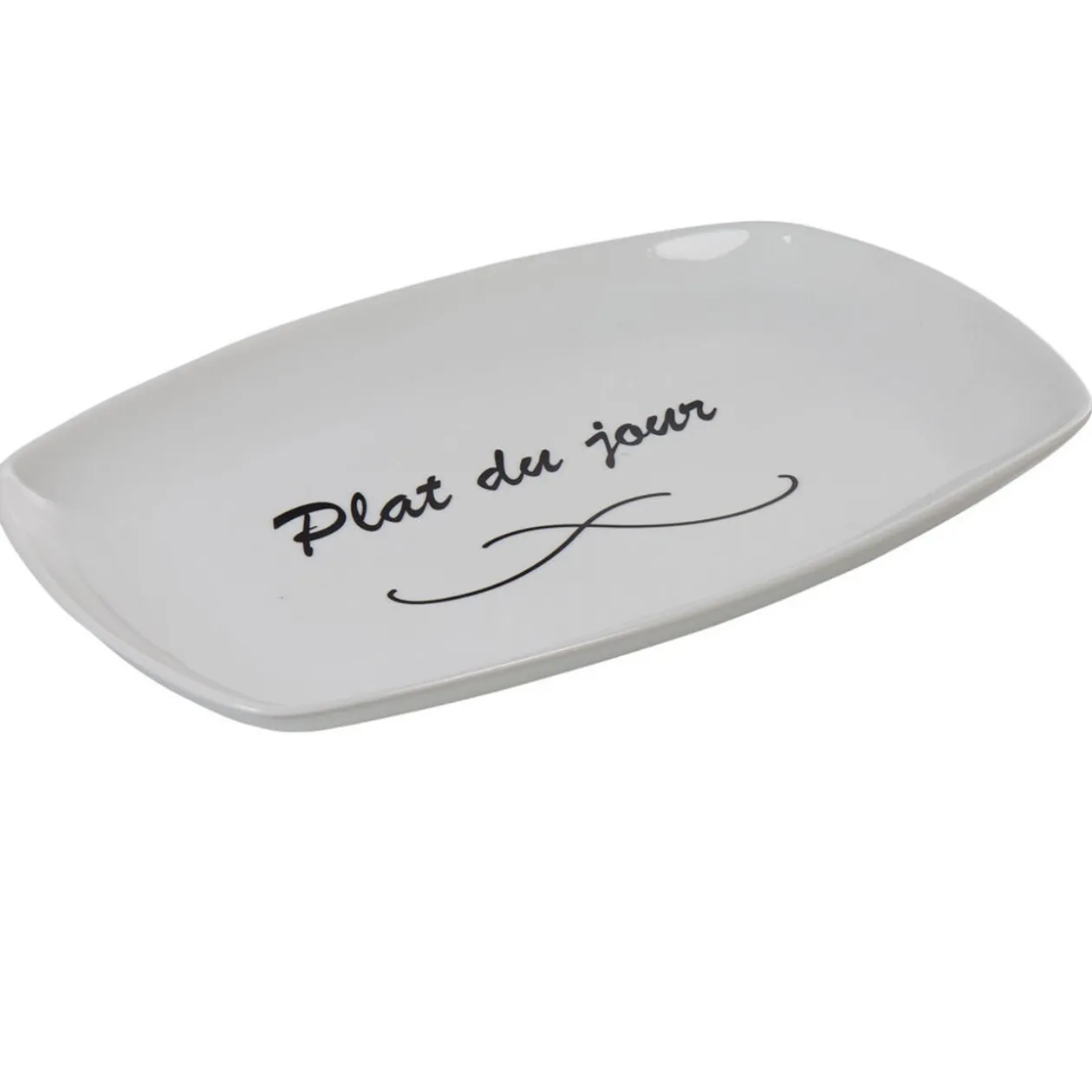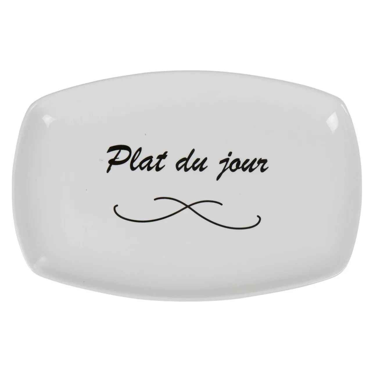 Assiette rectangulaire blanche message plat du jour