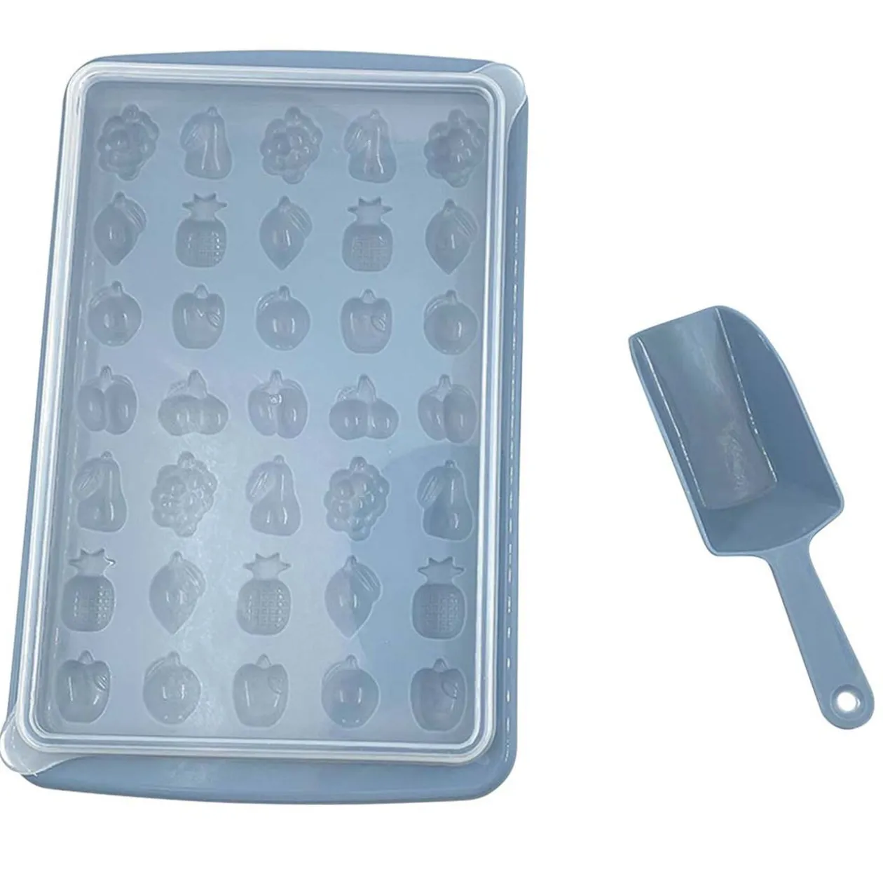 Faites des glaçons originaux en forme de fruits grâce à ce bac en plastique gris.