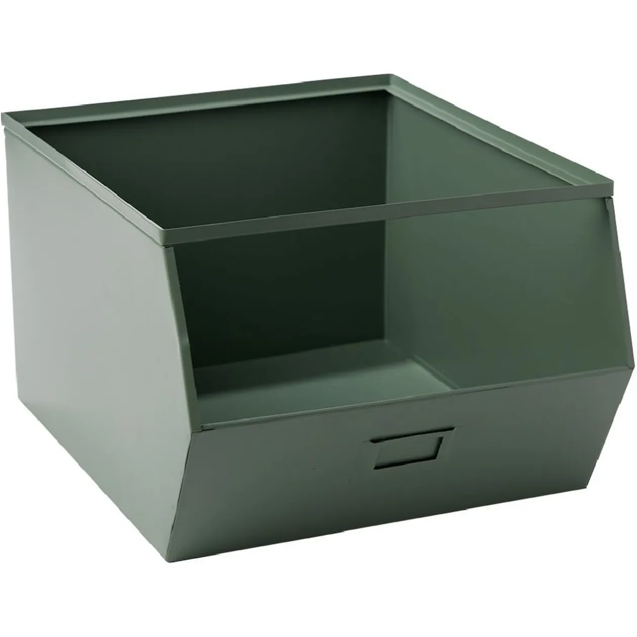 Bac de rangement superposable en métal vert, idéal pour organiser votre intérieur dans un esprit rétro.