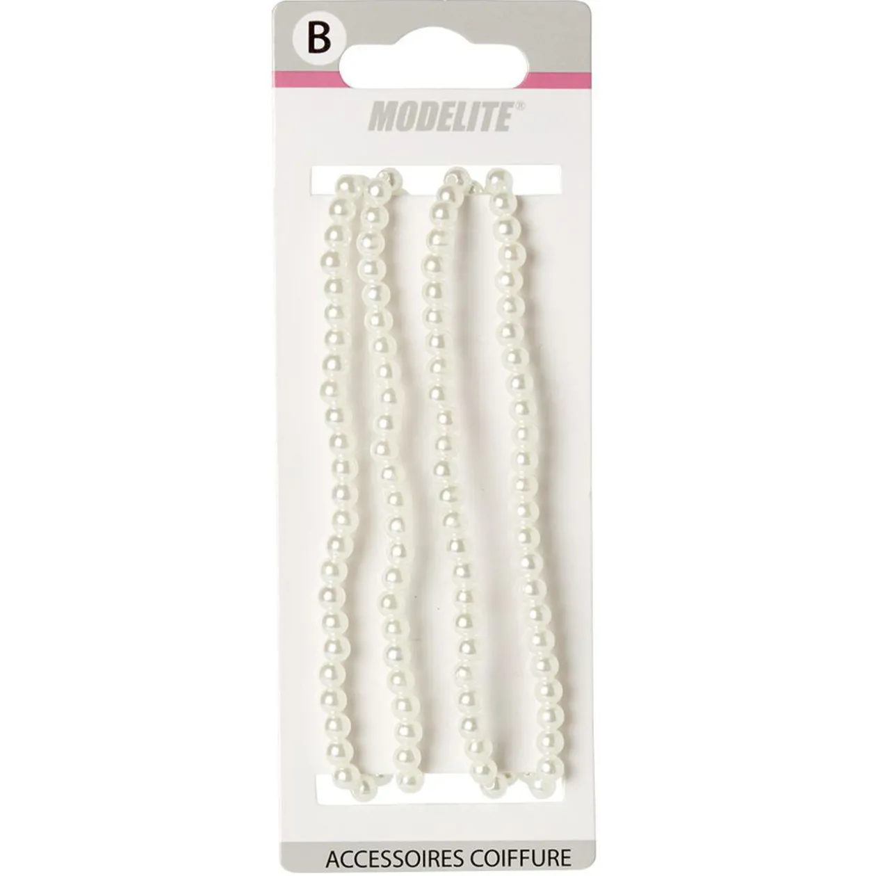 Bandeau élastique composé de perles d’imitation blanches.