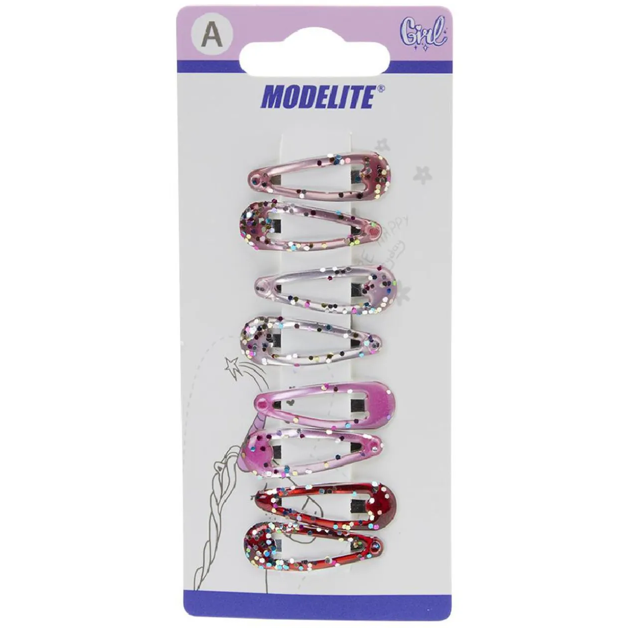 Lot de 8 barrettes clic clac aux coloris assortis pour ajouter une touche de fantaisie dans les coiffures de votre enfant.