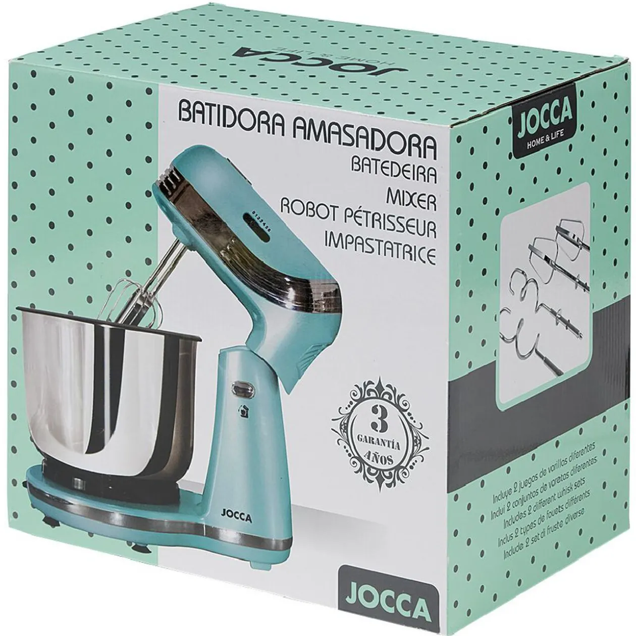 Ce robot pâtissier au design vintage comprend 2 fouets et 2 crochets à pâte pour la réalisation de tous types de pains, tartes et gâteaux montés !