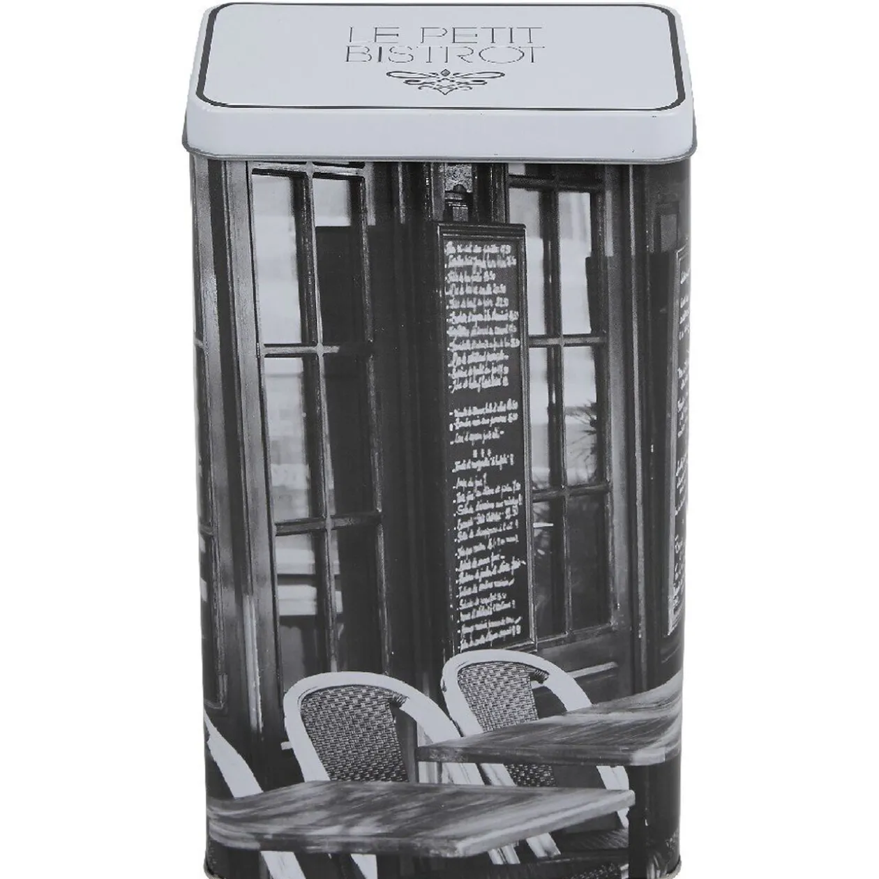 Boîte à café rectangulaire design bistrot de couleur noir et blanc.