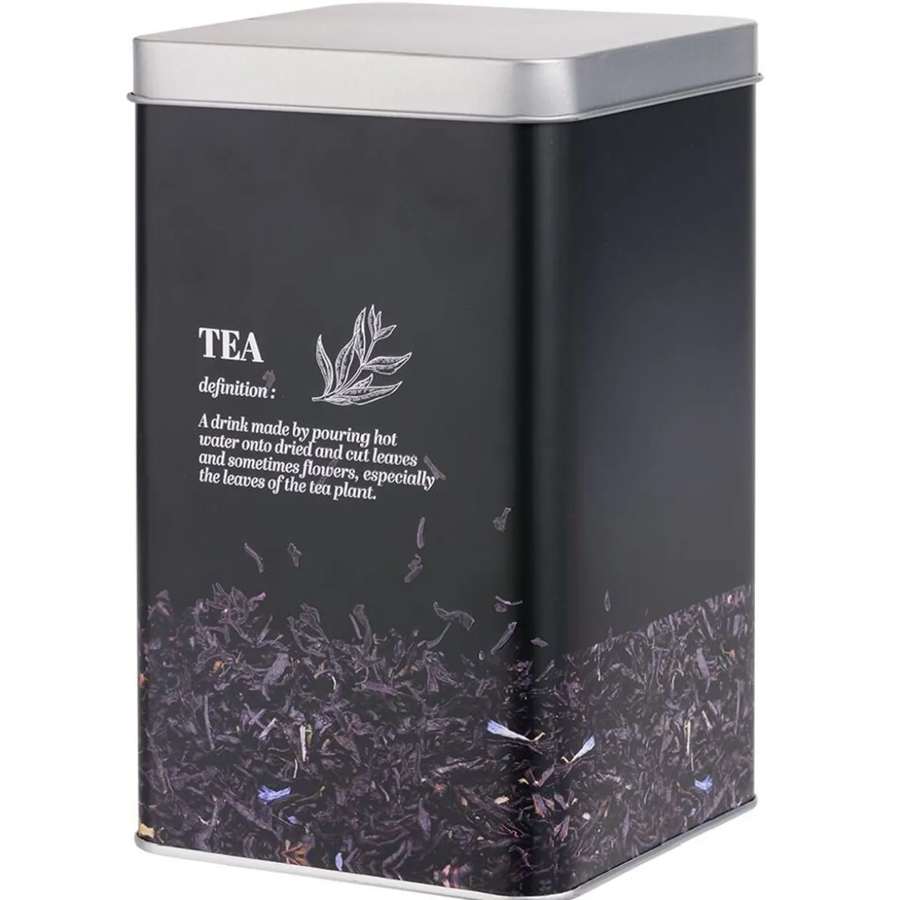 Conservez votre thé préféré dans cette jolie boîte en métal avec inscription et motif déco sur fond noir. Pratique et décorative, elle fera une présentation originale sur vos étagères ou le plan de travail de la cuisine.