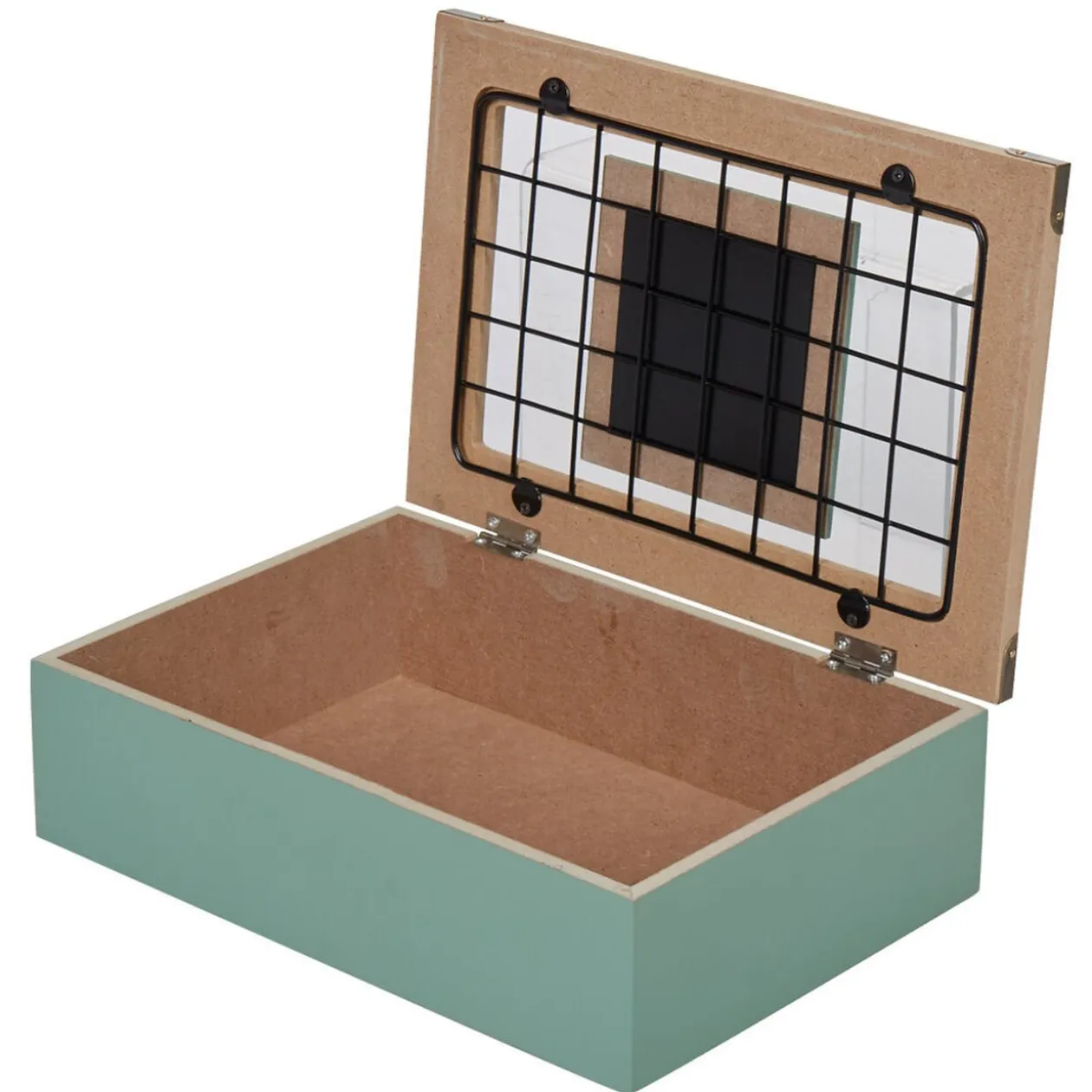 Boîte à thé en bois de couleur verte, avec couvercle en aluminium et motif « My little garden ».