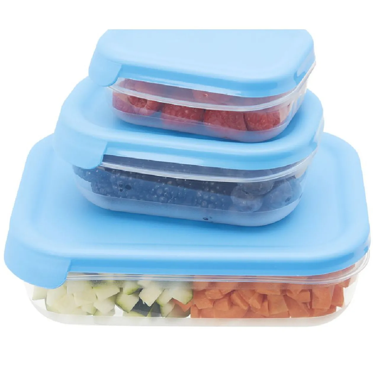 8 boîtes alimentaires avec couvercle bleu.
