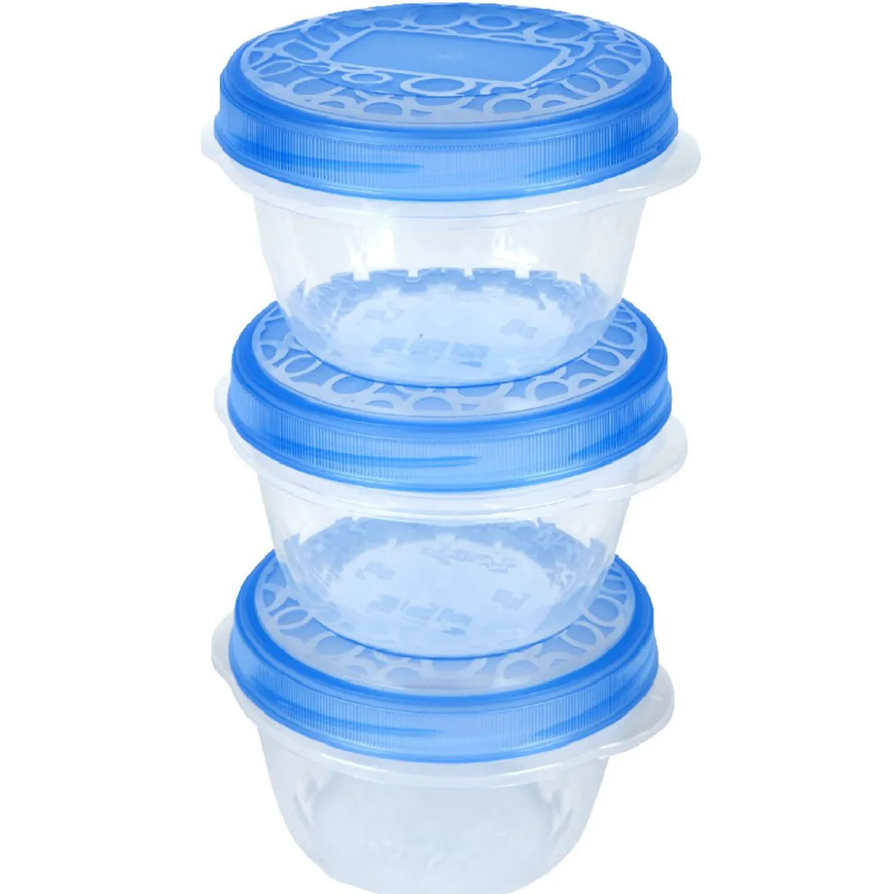3 boîtes alimentaires transparentes avec couvercle bleu « take away twist ».