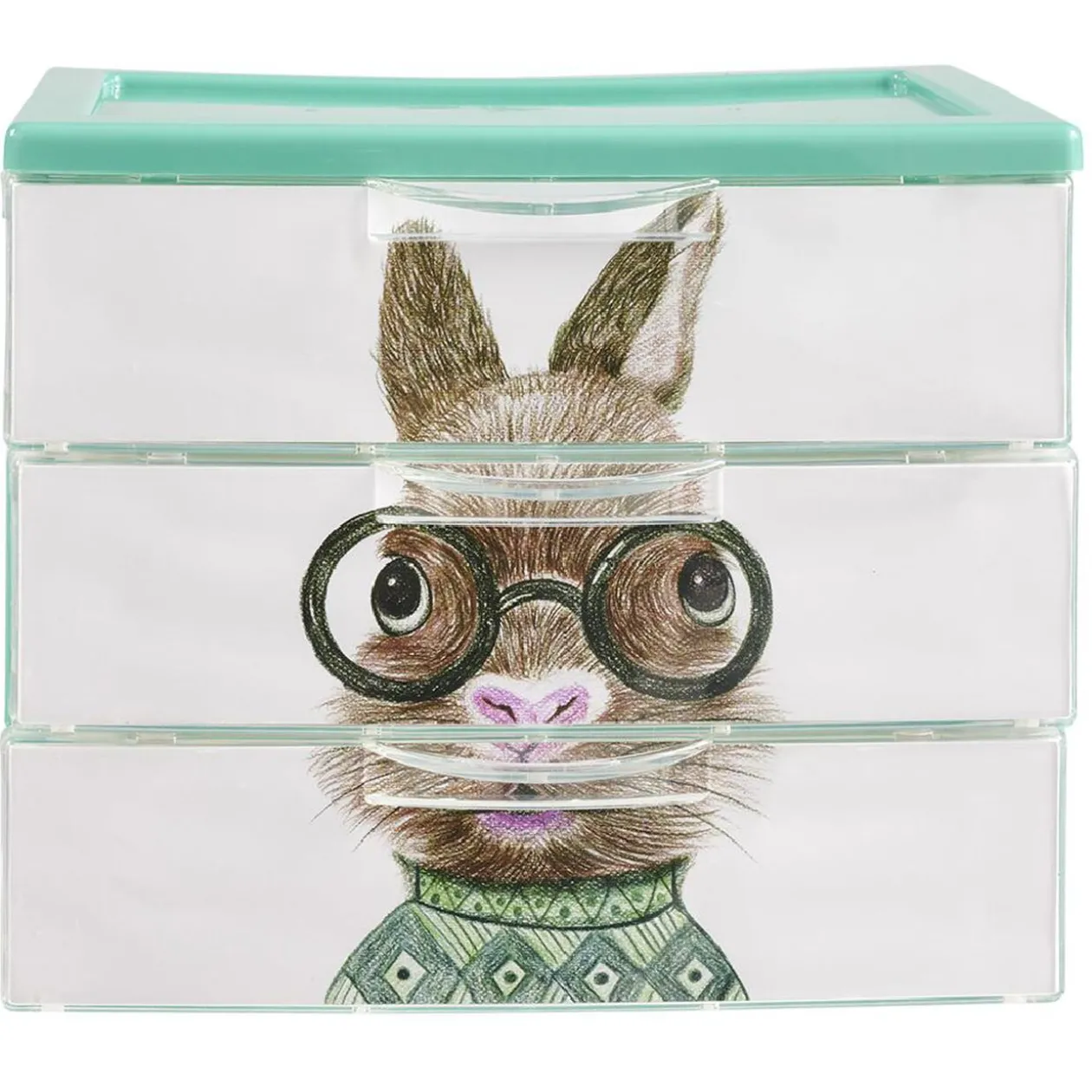 Mini boîte de rangement composée de 3 tiroirs à motif animal, idéal pour organiser les bijoux, élastiques, pinces et autres petits accessoires.