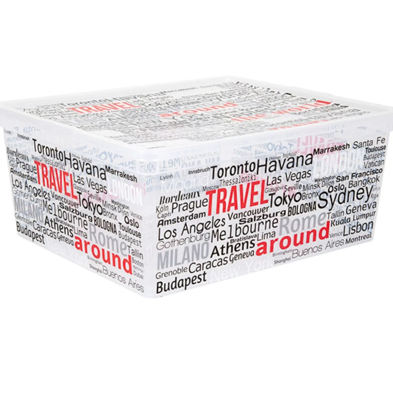 Boîte de rangement design noms de villes, dim. 40x34x17 cm, plastique.