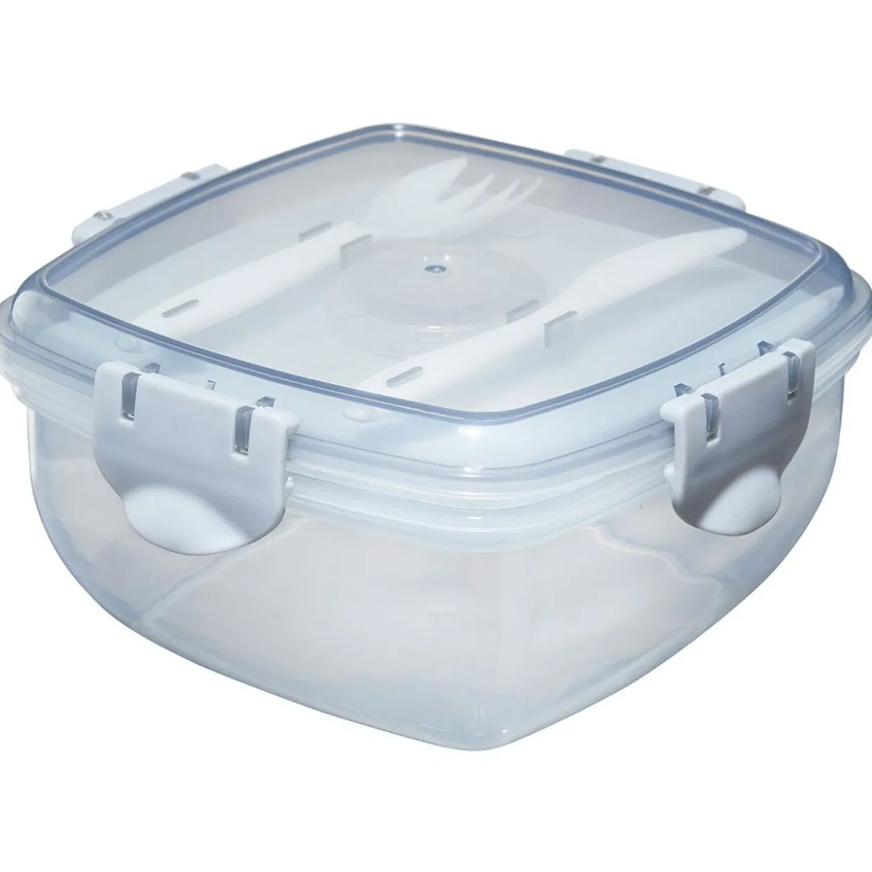 Boîte lunch d’une capacité de 1L, avec emplacements pour couverts intégrés et bloc réfrigérant.