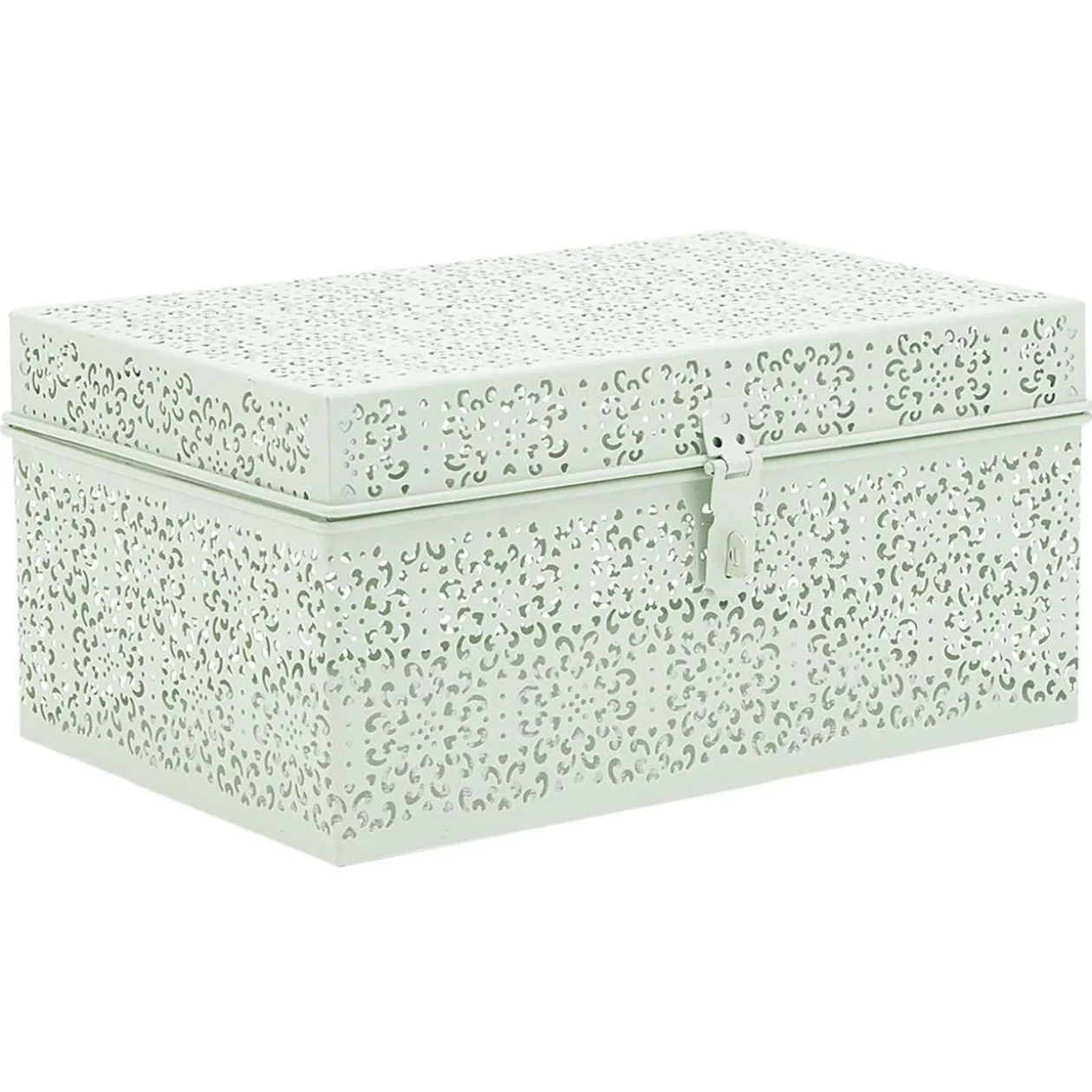 Cette mini malle en métal à motif ajouré effet dentelle sera parfaite pour mettre à l’abri vos bijoux et autres précieux accessoires.