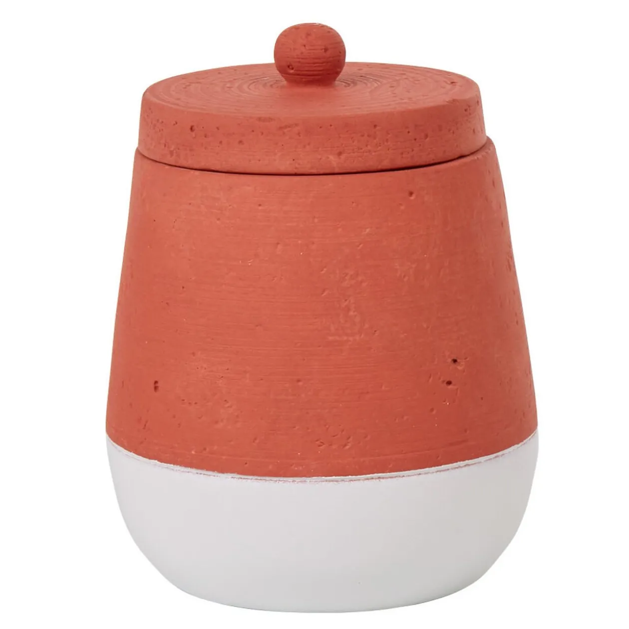 Poubelle à coton pour la salle de bain en résine effet béton de couleur brique et blanc.