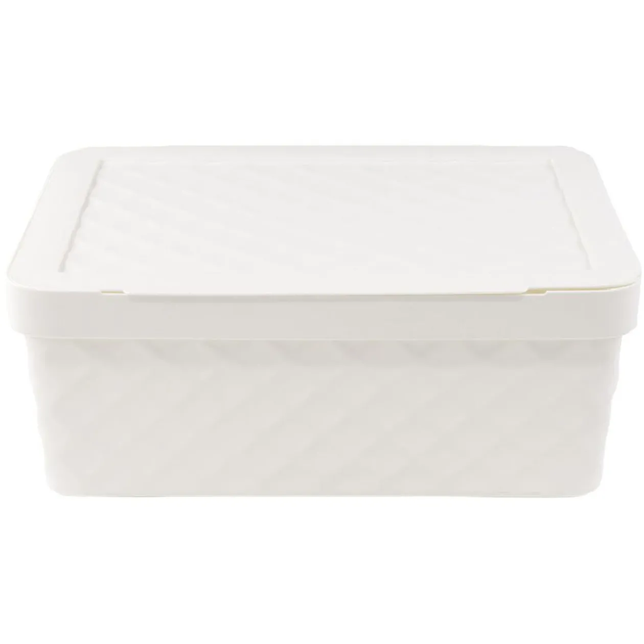 Boîte de rangement avec couvercle en plastique blanc design relief.
