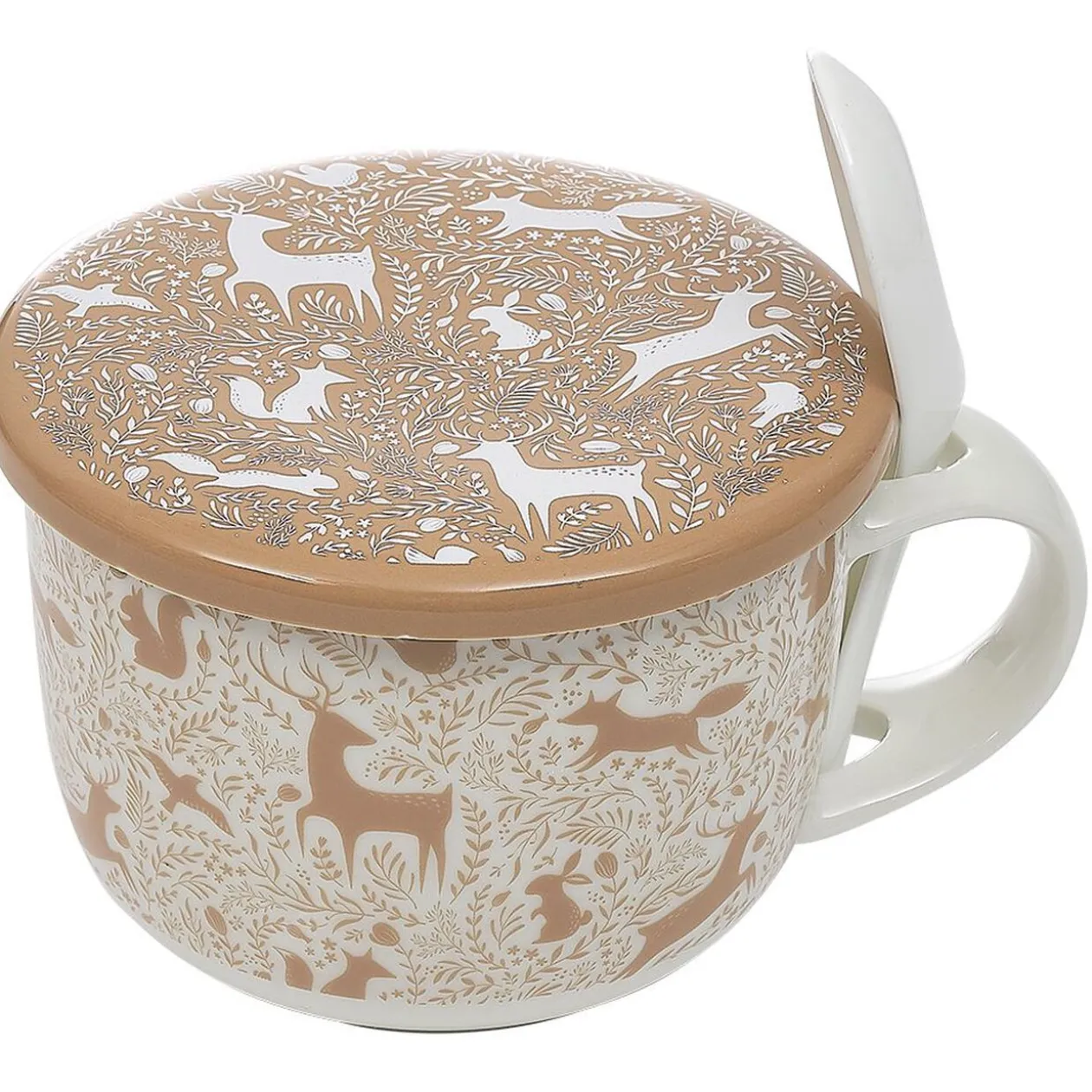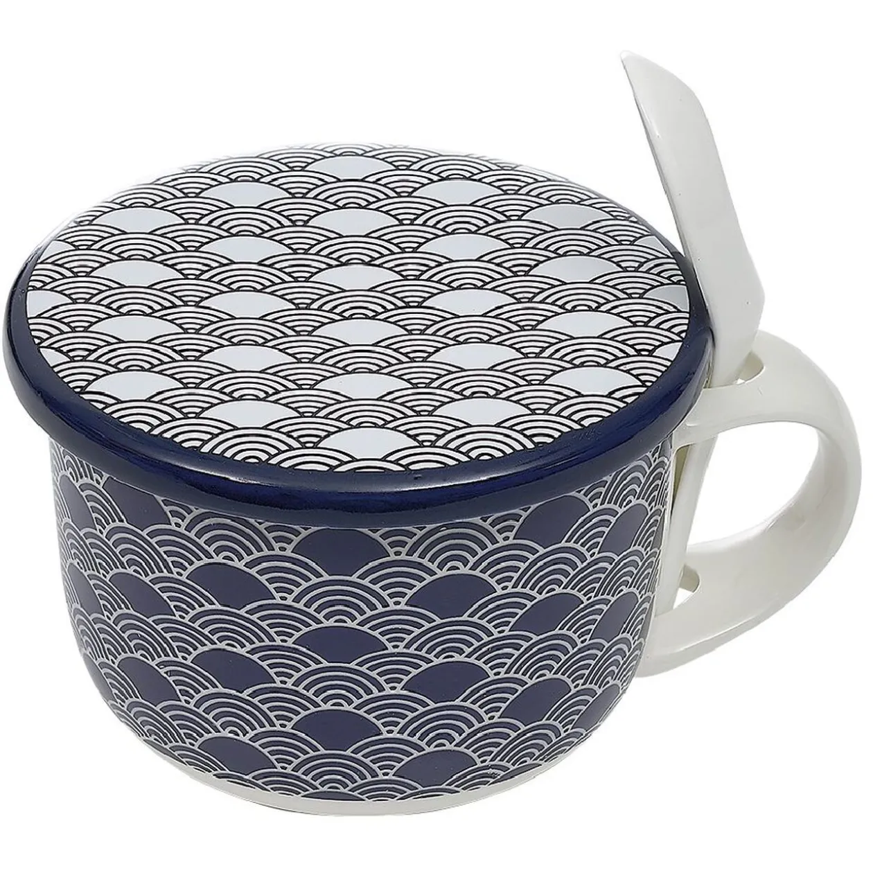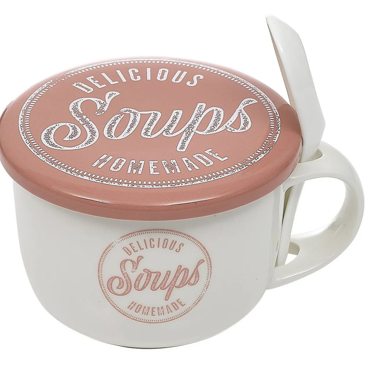 Bol à soupe au joli design avec couvercle et cuillère en porcelaine assorti. Pratique pour boire et garder au chaud une bonne soupe à table ou devant la télé.