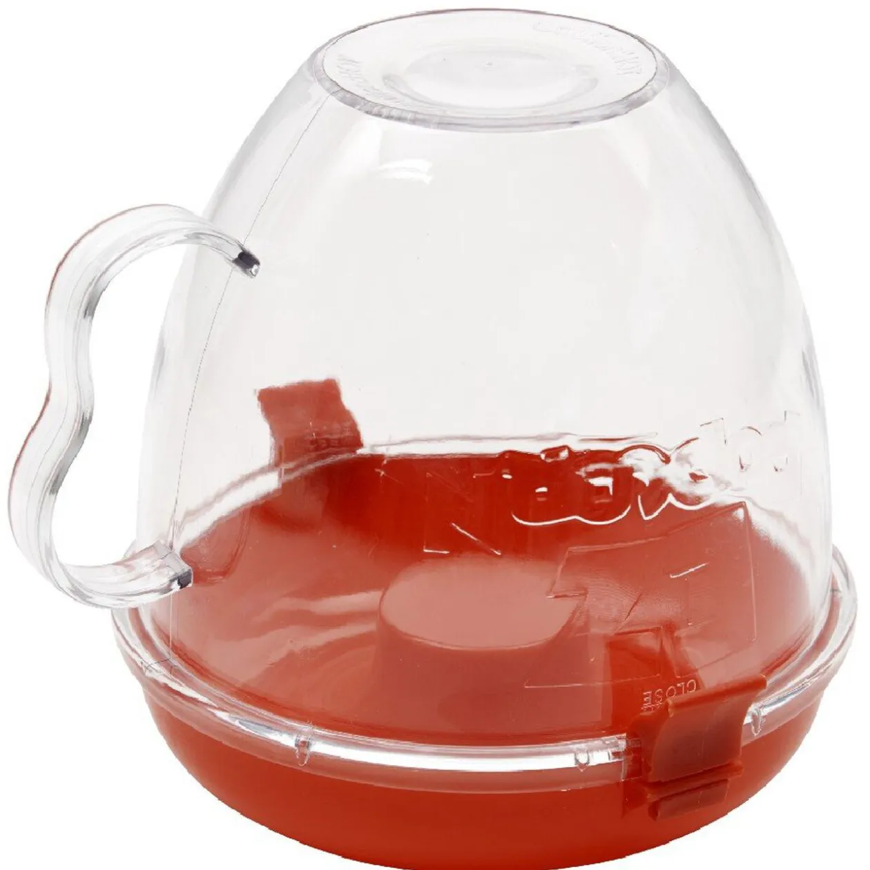 Il est composé d’un bol transparent en plastique avec anse et couvercle gris.