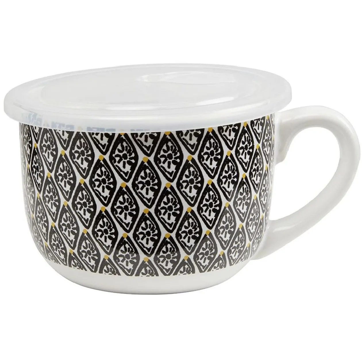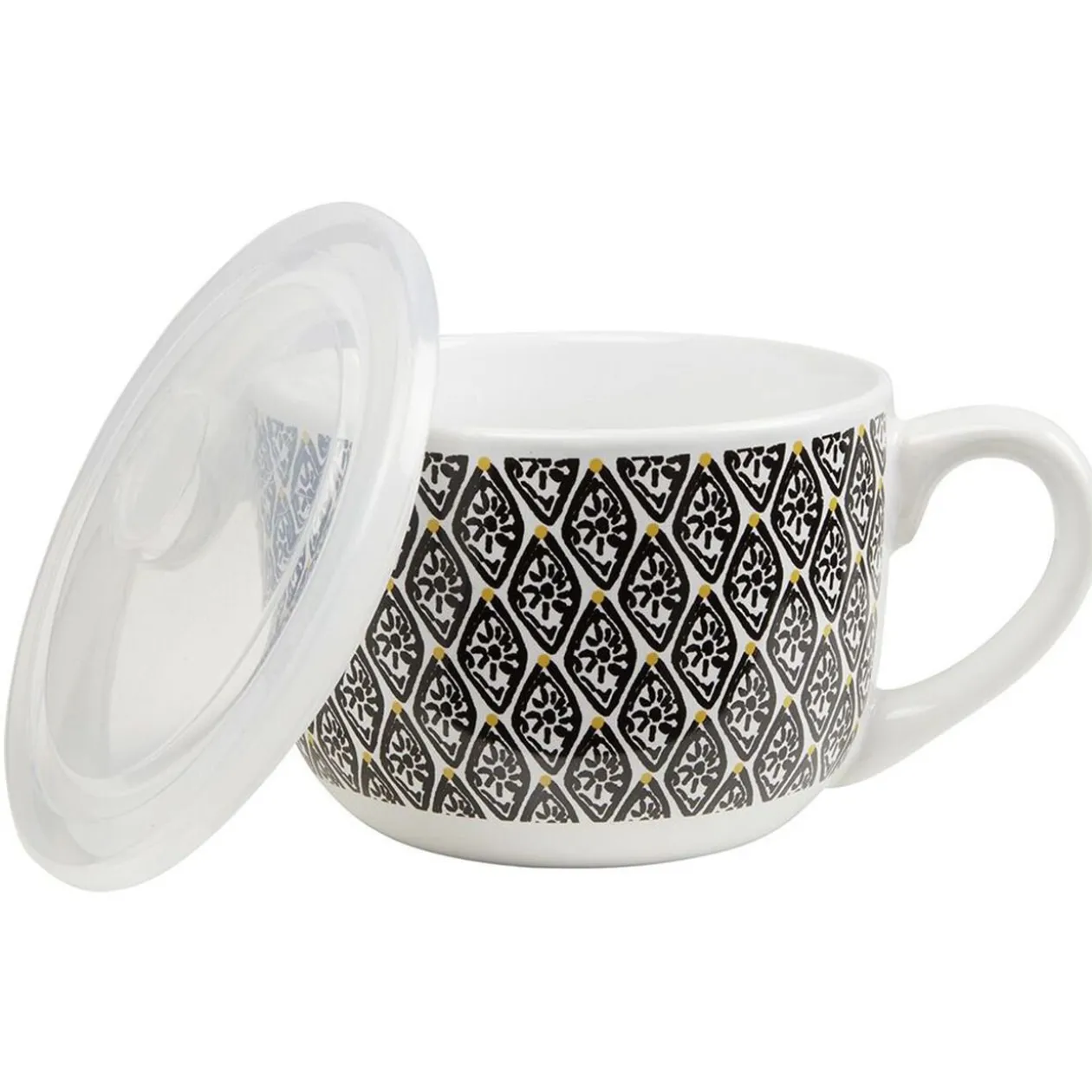 Ce bol jumbo de couleur ethnique avec couvercle transparent sera idéal pour boire une soupe ou une autre boisson chaude.