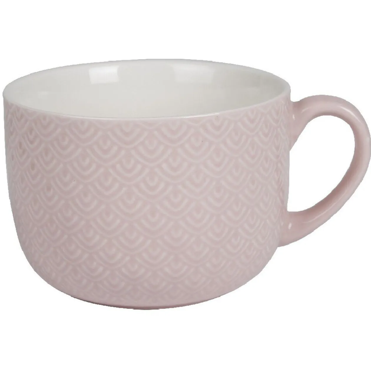 Bol jumbo design à relief rose et blanc avec anse unie rose.