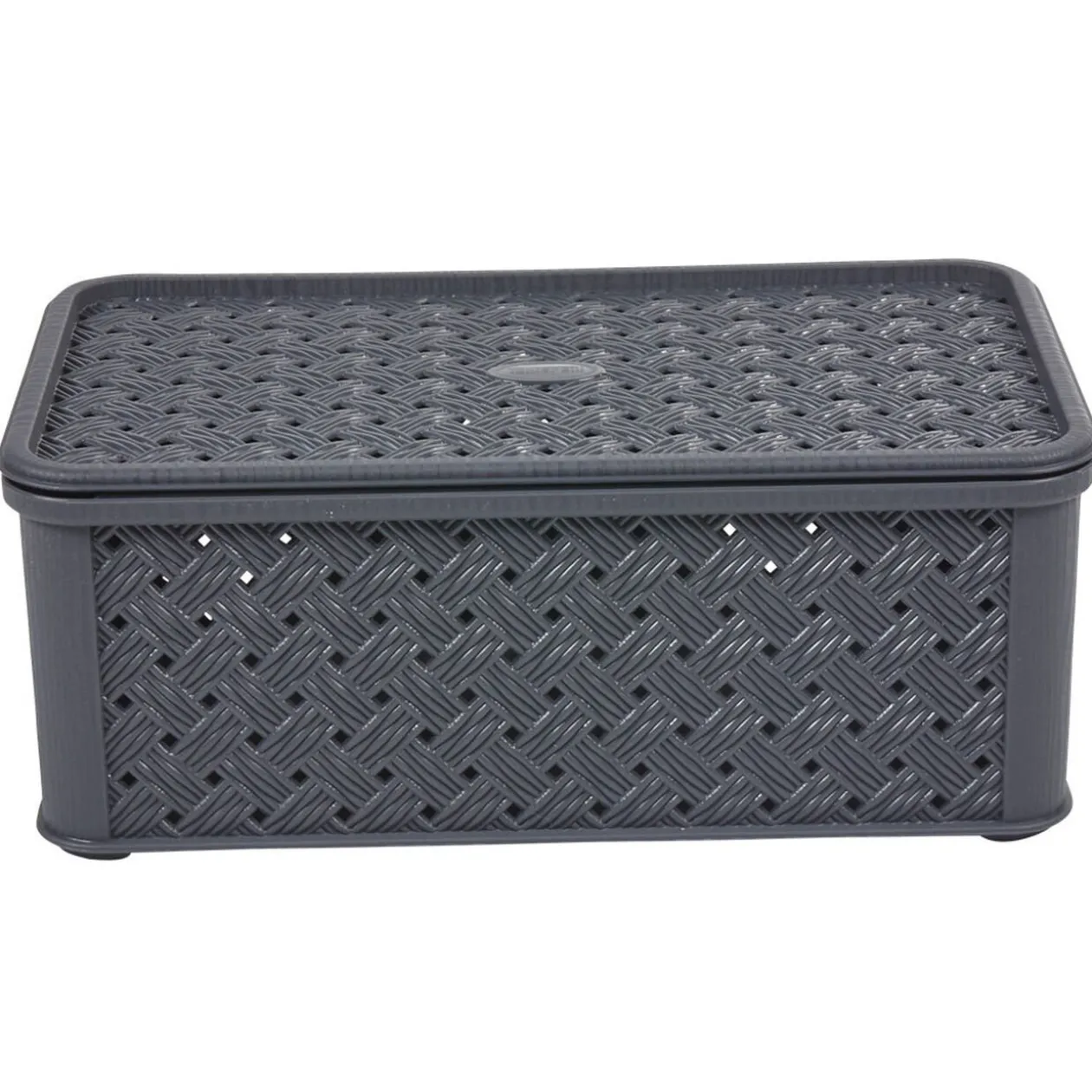 Box de rangement Arianna gris, effet tressé, cont. 4 L, dim. 16,5x29xh.11 cm, polypropylène.