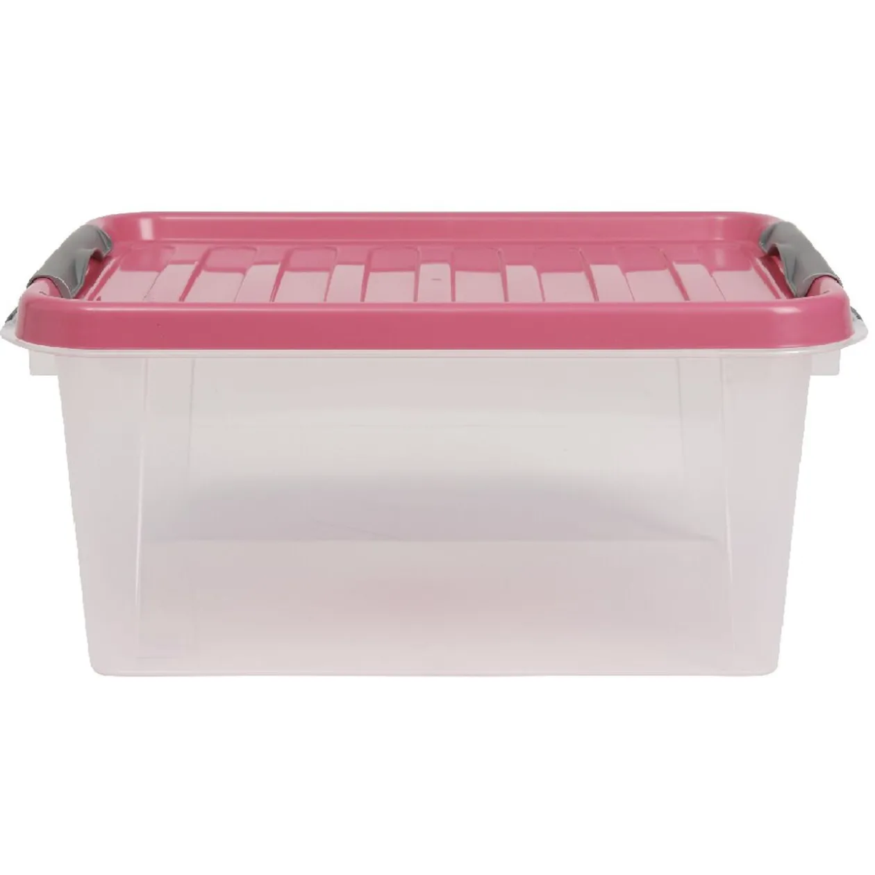 Rangez tout votre bazar dans ce box de rangement au couvercle fuchsia, et à clip pour le maintenir fermé, d’une contenance de 14 L.