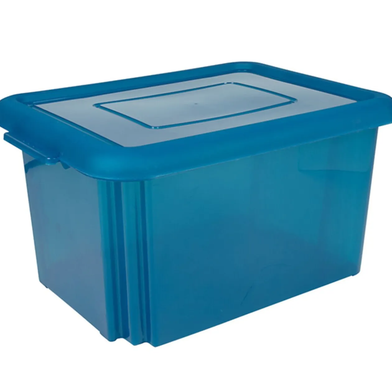 Box de rangement plastique bleu, cont. 55 L, dim. 60x44xh.30 cm.