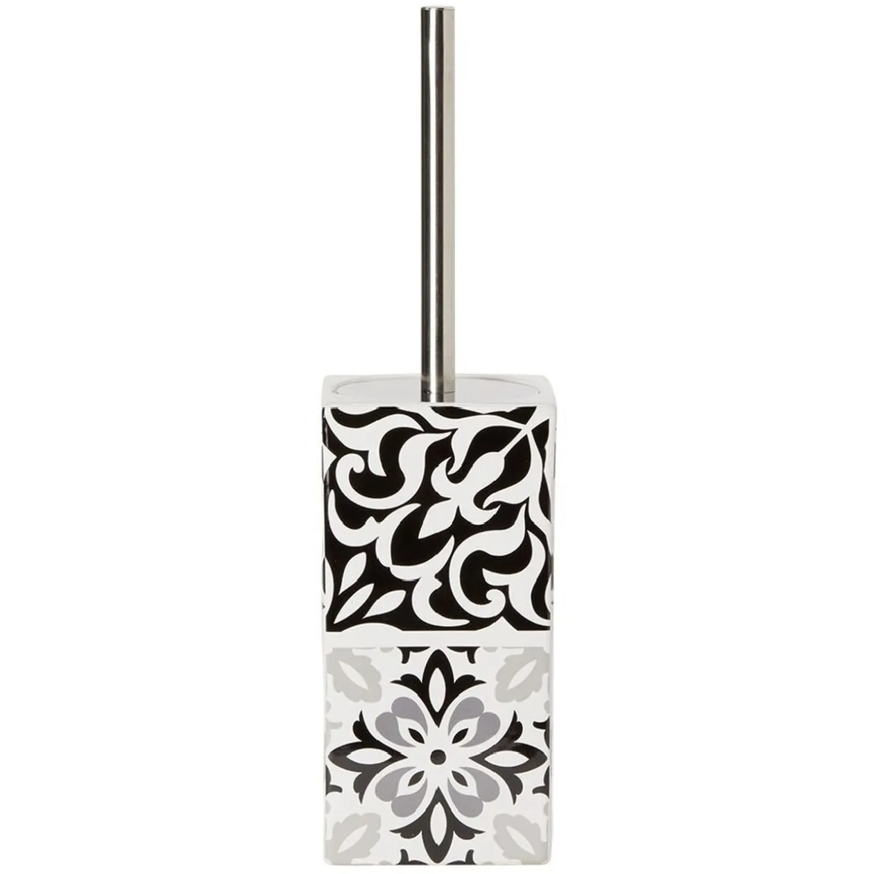 Brosse WC avec support en céramique design carreau de ciment noir et blanc.