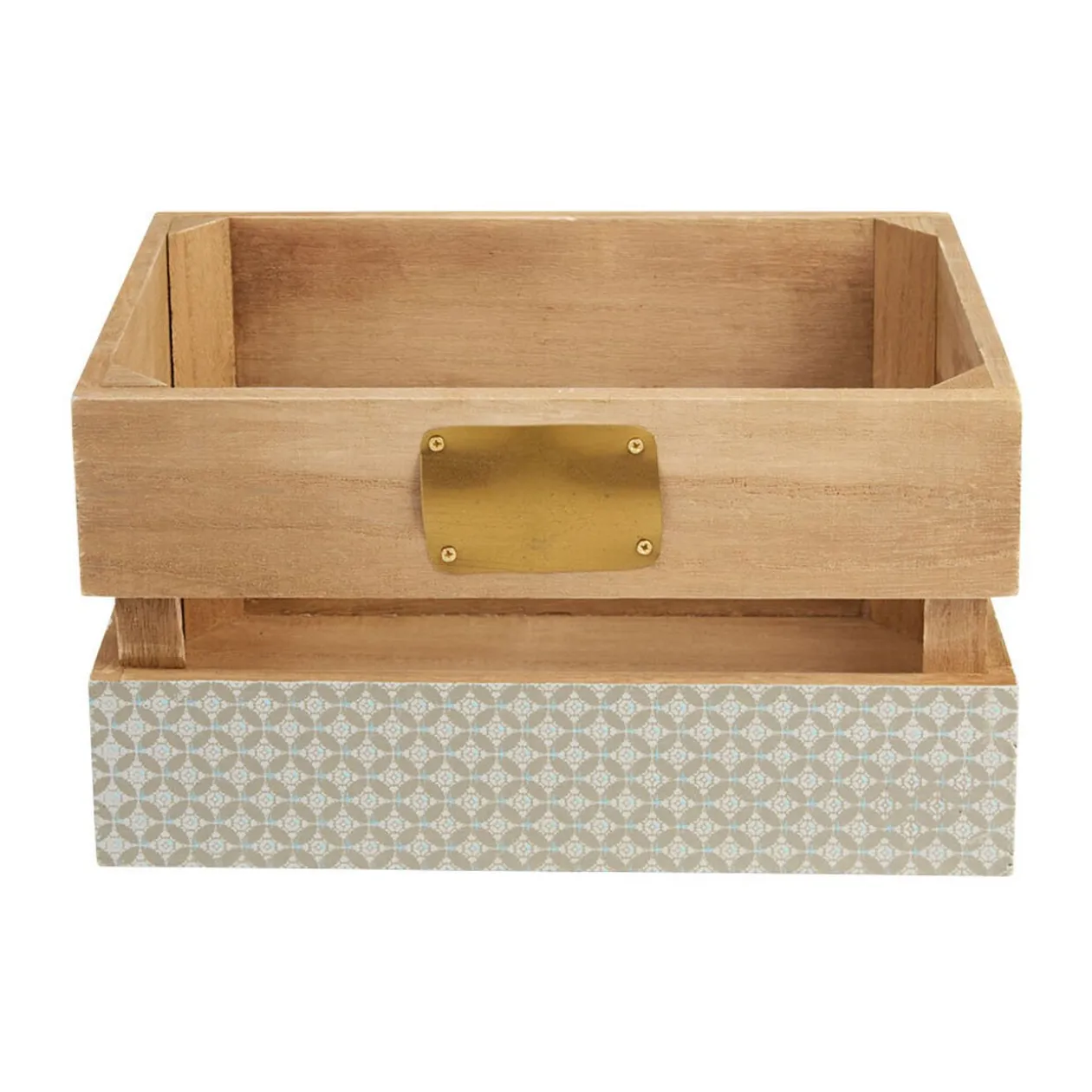 Cagette décorative de rangement couleur bois et motif carreaux de ciment.