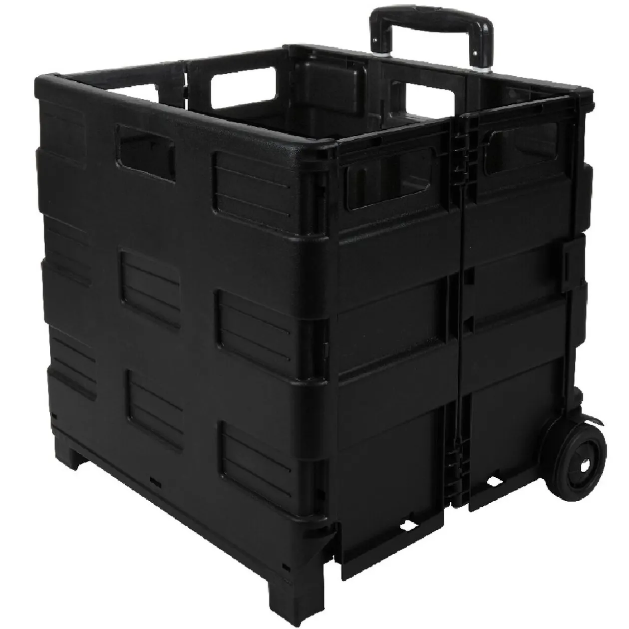 Grâce à cette caisse pliante noire d’une contenance de 45 L, transportez facilement vos objets du quotidien, vos déchets ou même vos courses. Déplacez-la facilement grâce à ses roulettes et sa poignée télescopique.