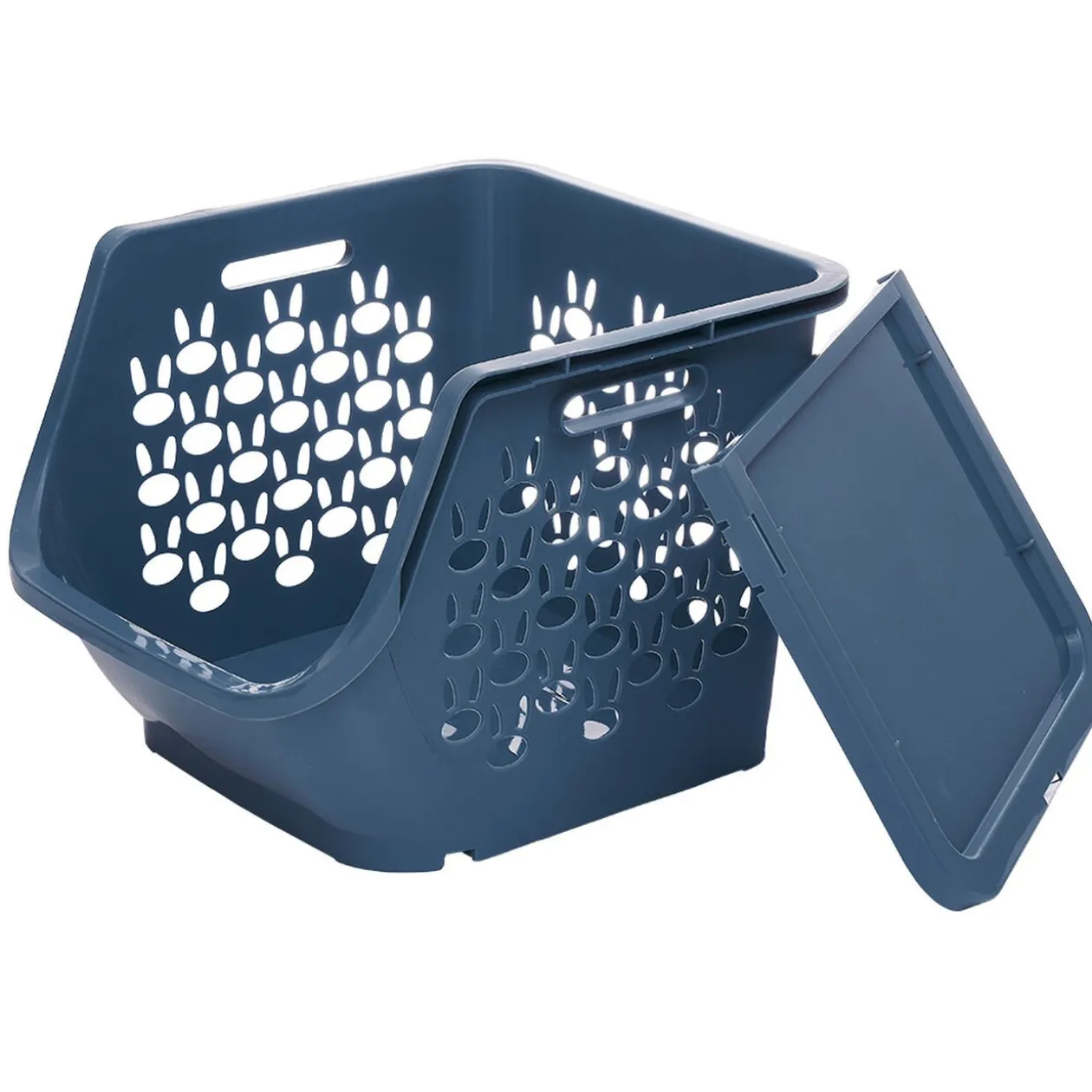 Casier de rangement superposable avec couvercle, pratique et facile à disposer.