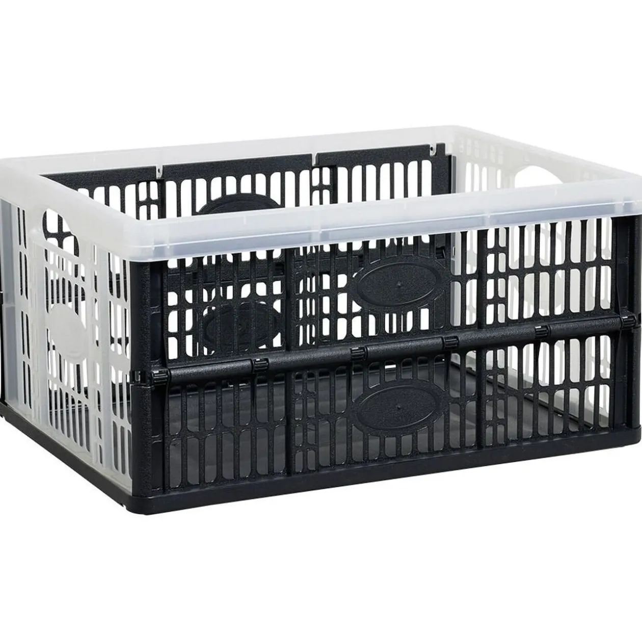 Optimisez votre rangement de buanderie, de garage ou toute autre pièce avec ce casier pliant en plastique transparent blanc et noir.