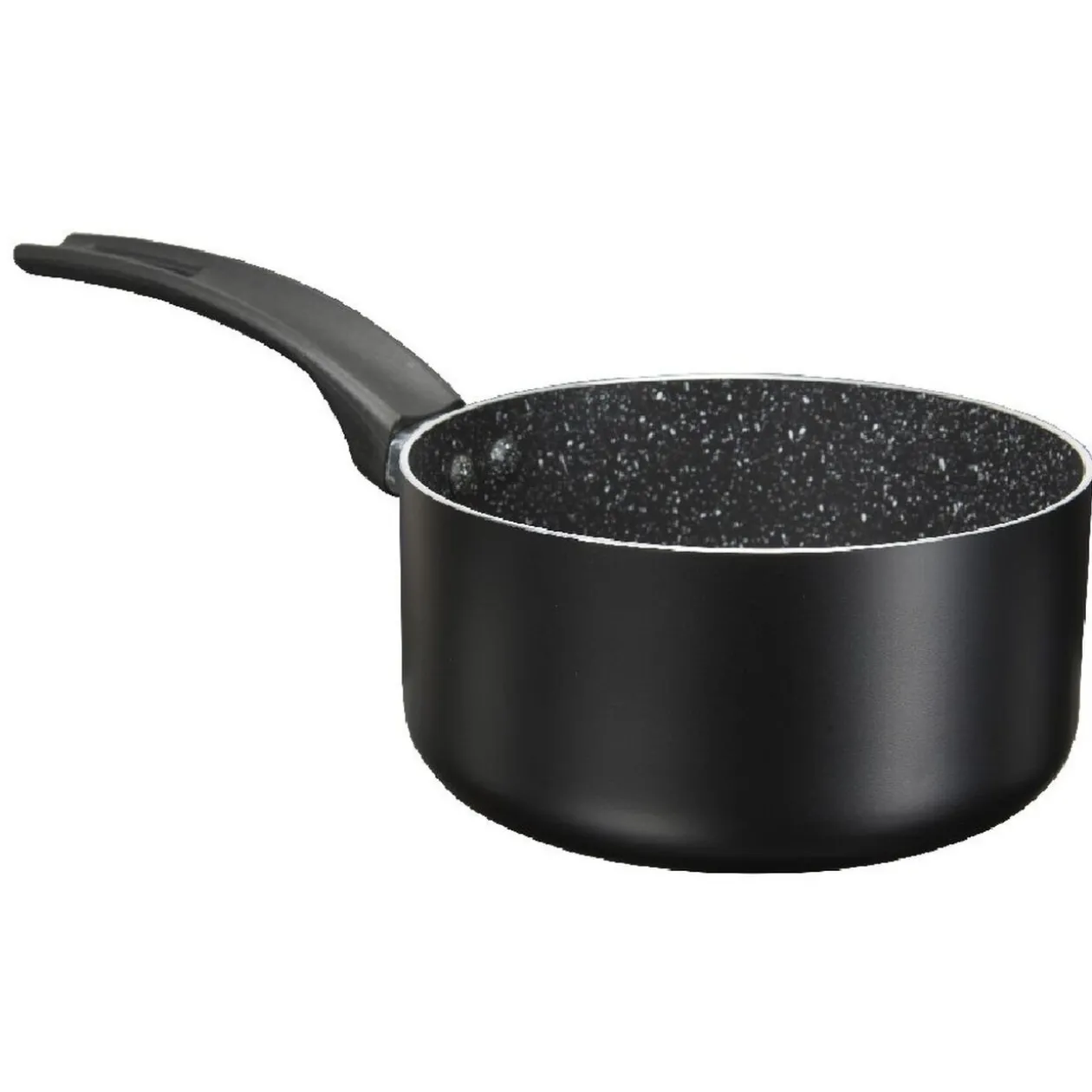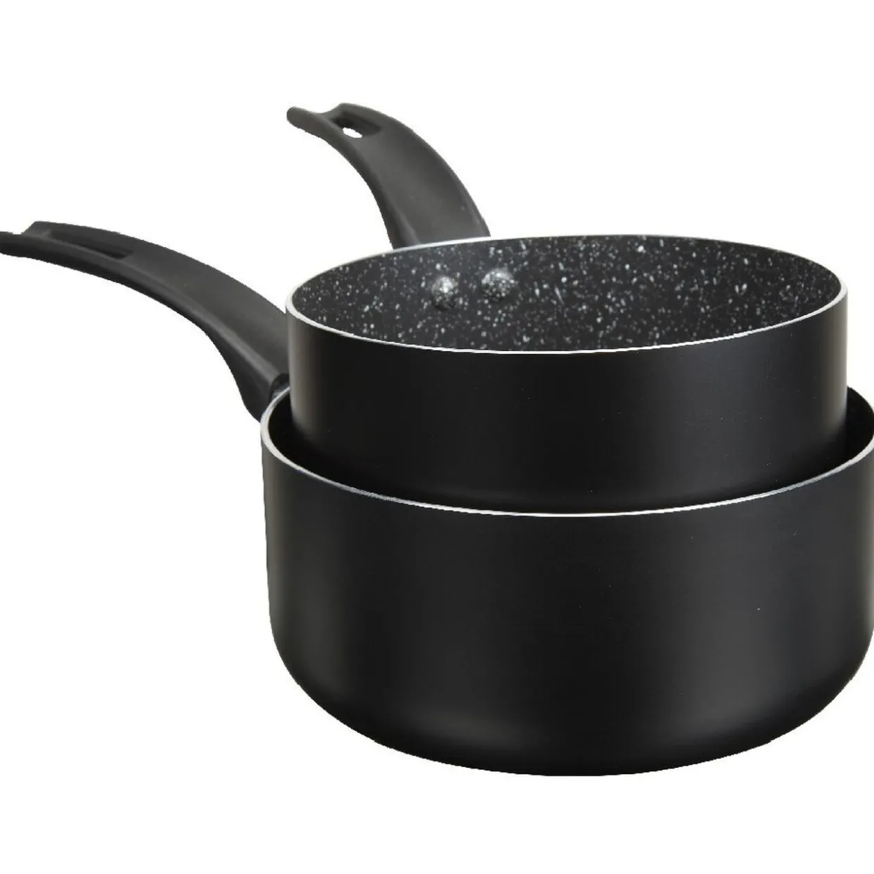 Lot de 2 casseroles noires avec intérieur effet pierre, toutes deux spécialement conçues pour les plaques à induction.
