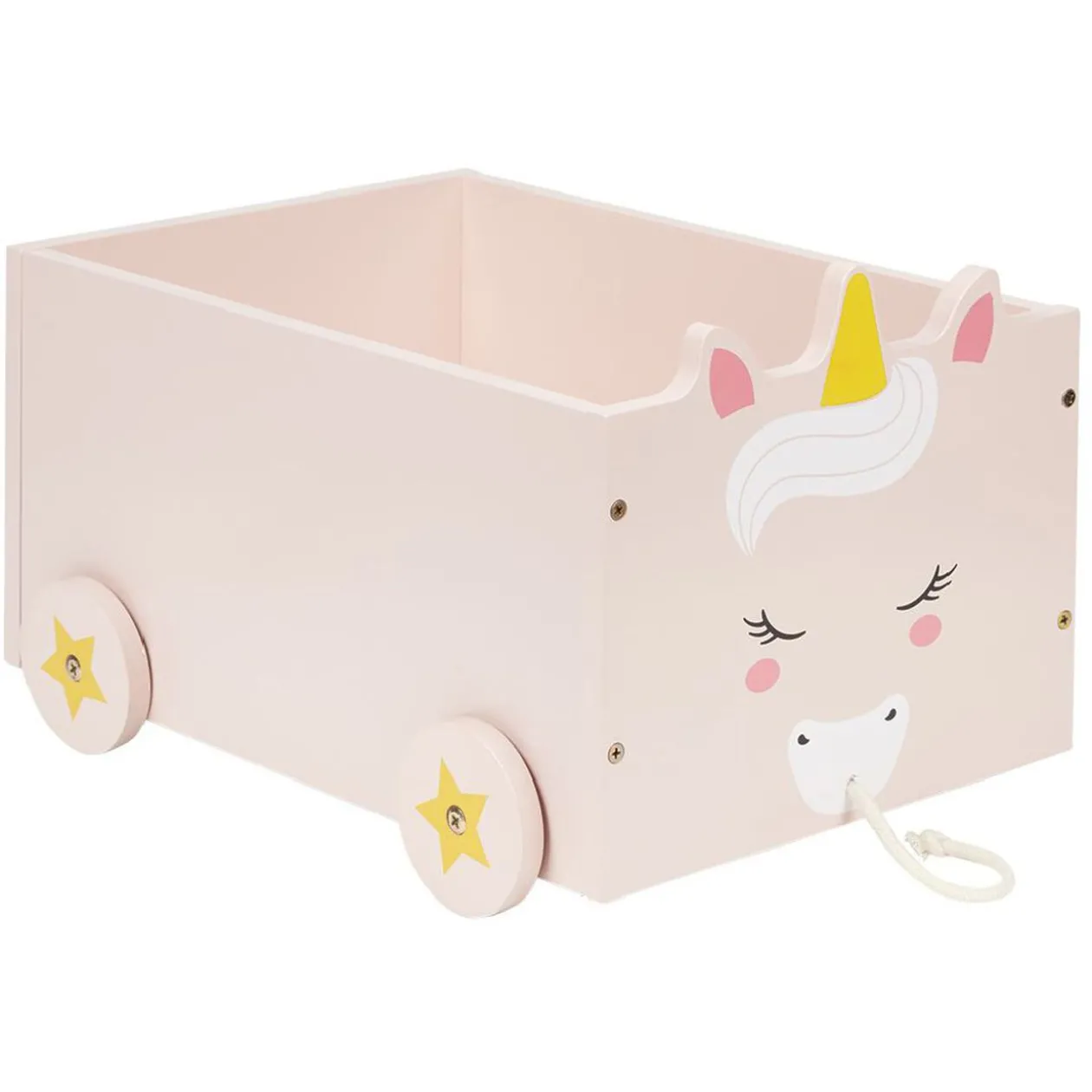 Ce chariot en bois est idéal comme rangement pour la chambre d’un jeune enfant.