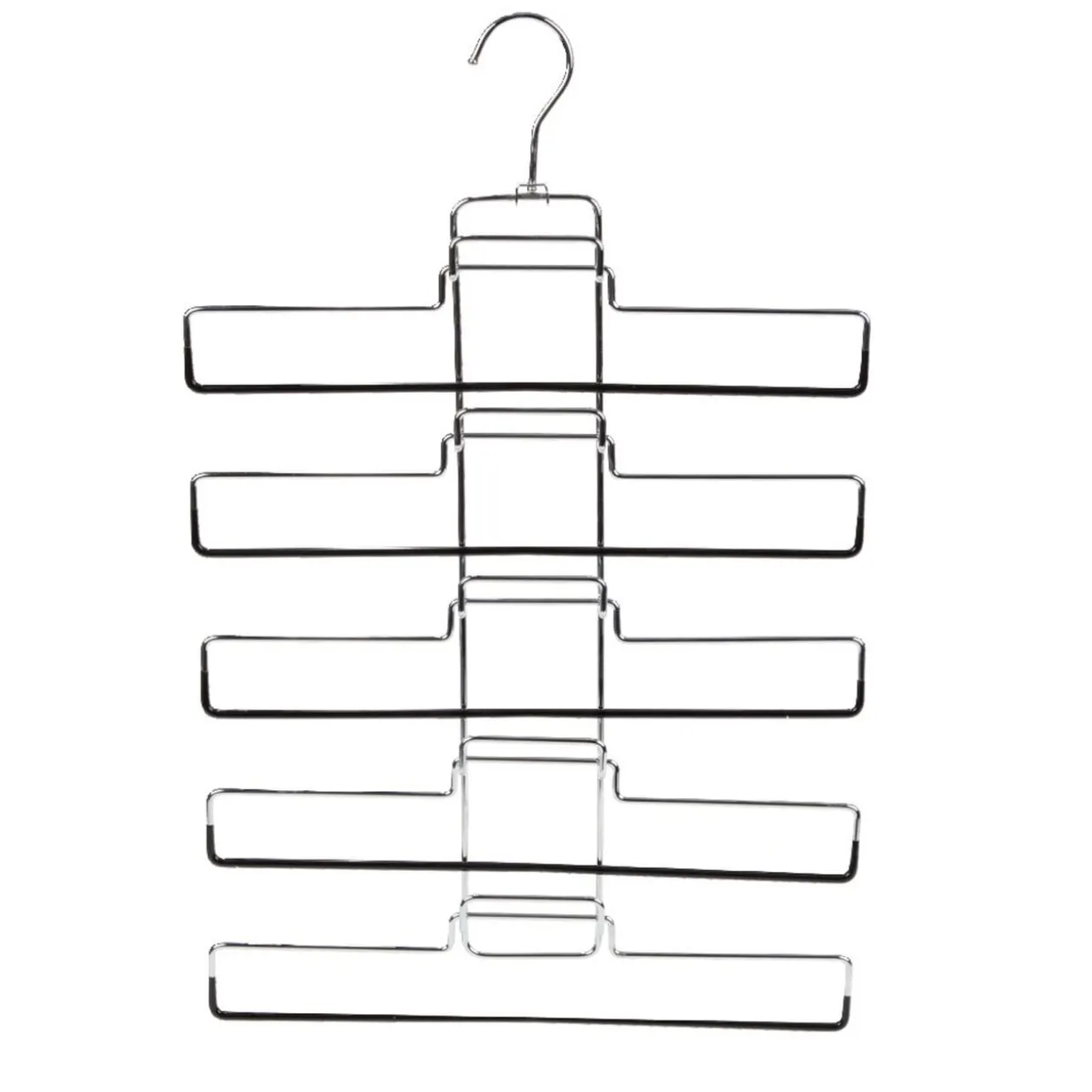 Ne cherchez plus vos pantalons au fond de votre dressing, grâce à ce cintre gain de place vous pourrez y accéder rapidement et simplement. Vous pourrez y suspendre jusqu’à 5 pantalons simultanément.