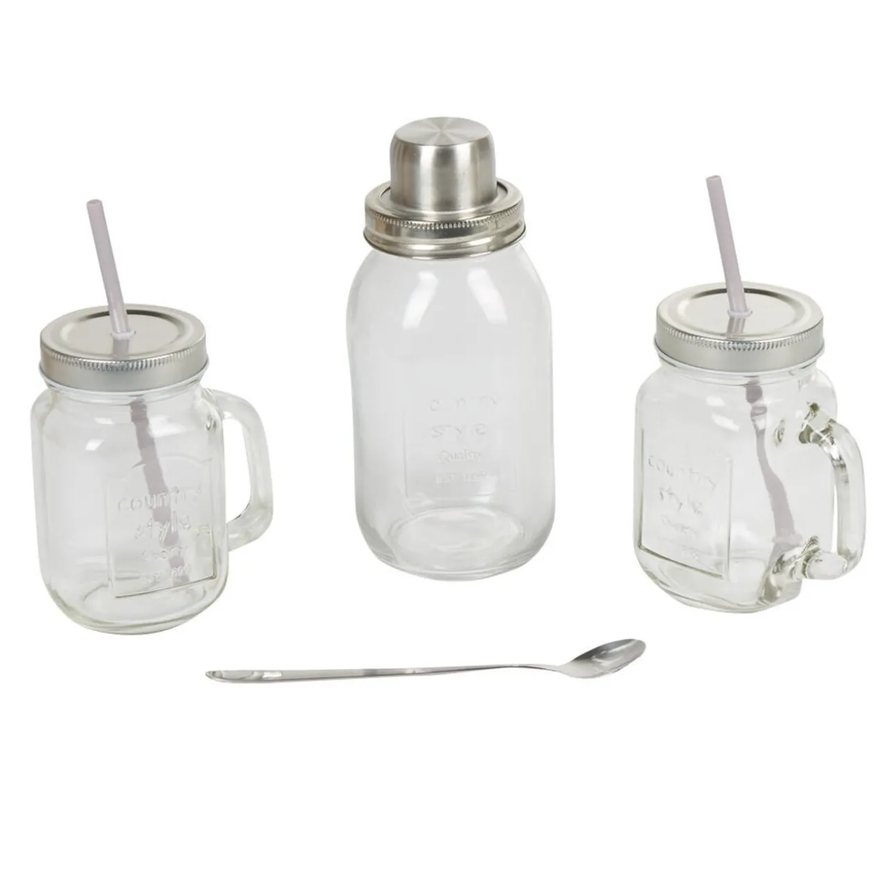 Coffret à cocktail, comprend 2 bocaux, 1 shaker en inox, 1 cuillère et paille transparente.