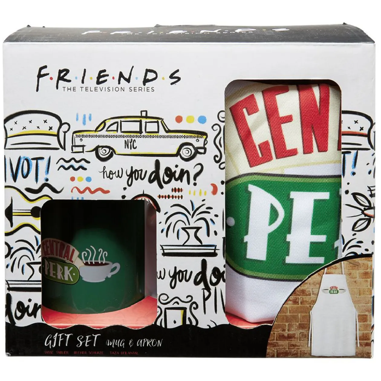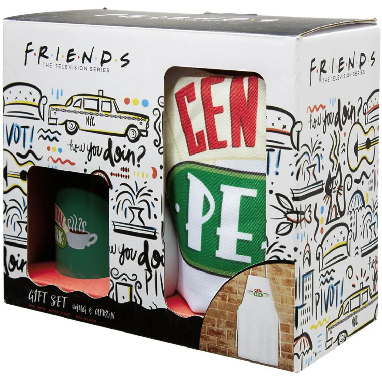 Coffret comprenant une tasse et un tablier à l’effigie de la série FRIENDS.
