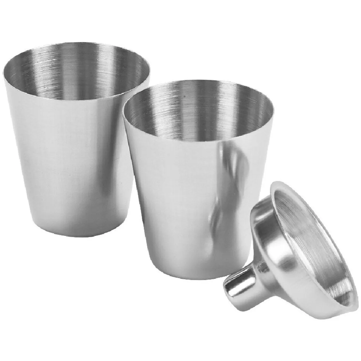 Coffret whisky contenant une flasque argentée en inox avec ses deux verres à shooter. De plus, un mini entonnoir est inclus pour vous faciliter le remplissage de la flasque.