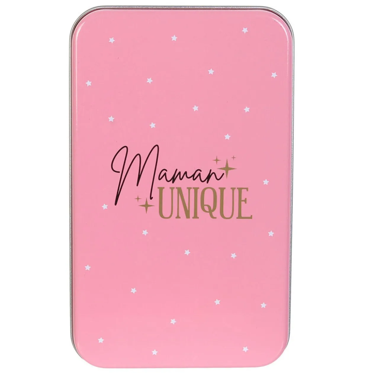 Coffret rose avec inscription « Maman unique » comprenant 5 pinceaux différents : pour le blush, fard à joue, fard à paupières, lèvres, etc.