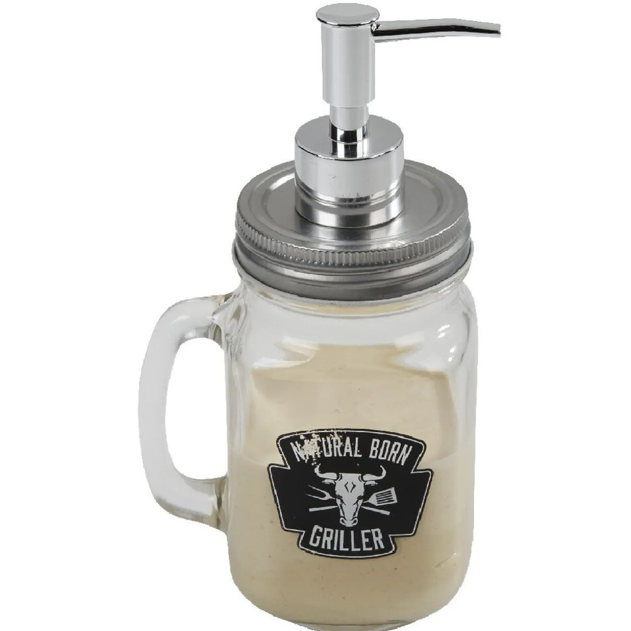 Contenant à sauce de style américain avec poussoir et poignée latérale.