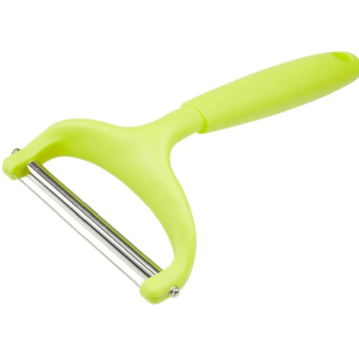Coupe fromage en inox et plastique vert, idéal pour couper facilement et rapidement des parts de fromage.