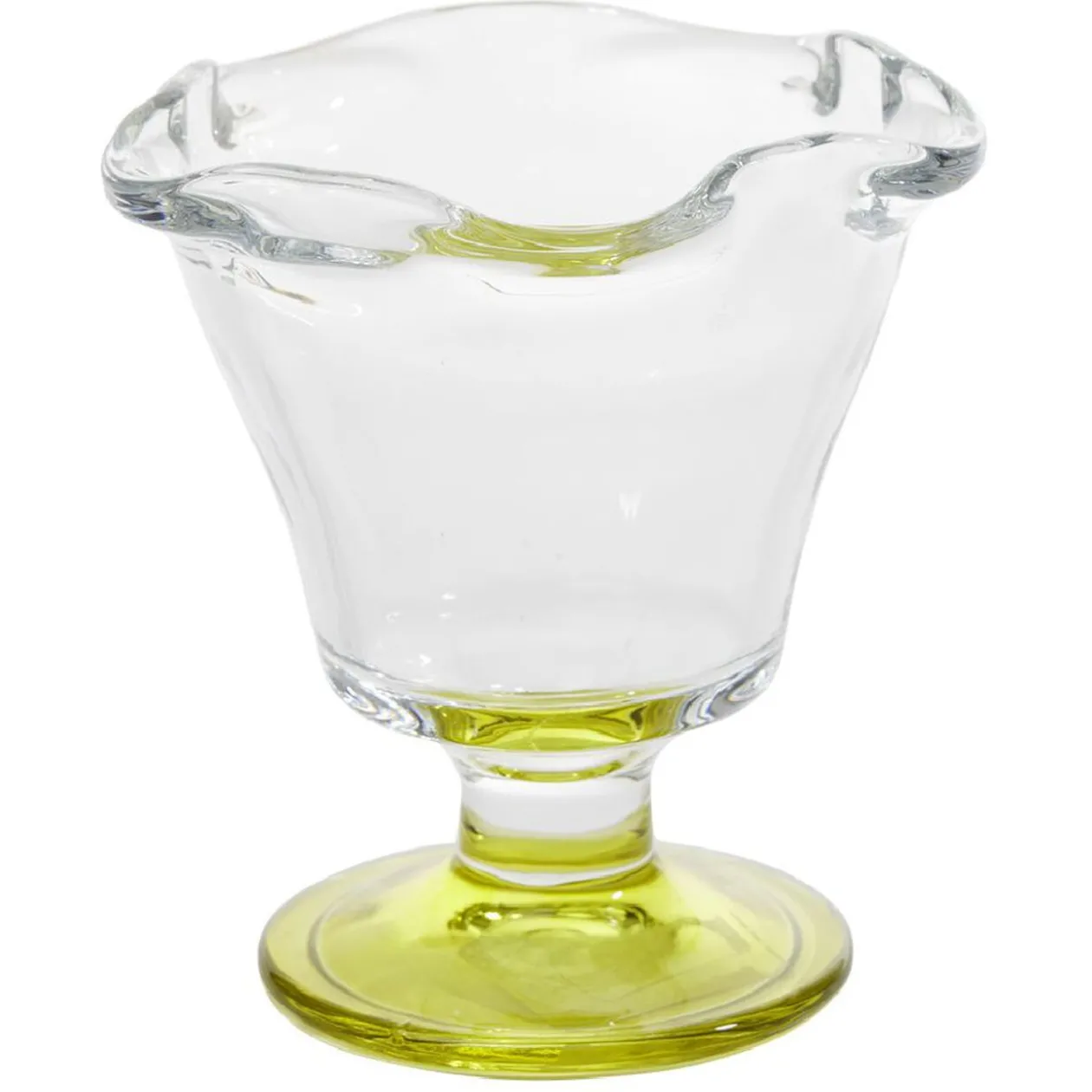 Coupelle en verre avec pied coloré rouge, bleu, jaune ou vert, idéale pour servir joliment une glace.