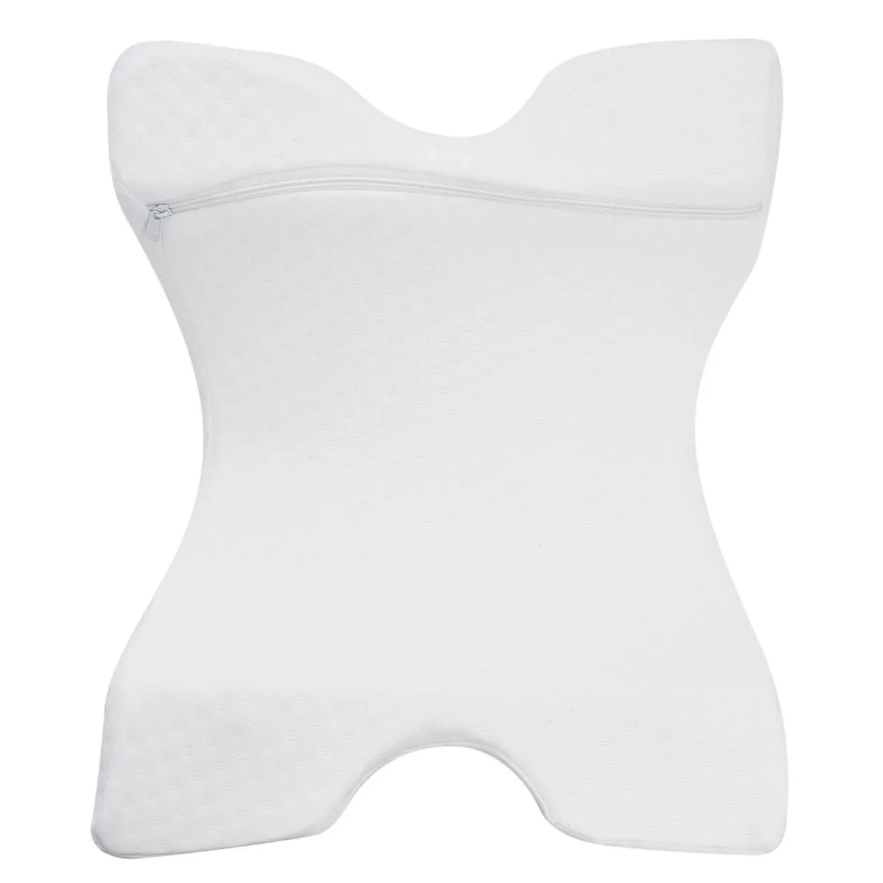 Oreiller incurvé à mémoire de forme, multifonction vous pouvez l’utliser de plusieurs façon : à l’endroit avec possibilité de passer son bras au-dessous, à l’envers pour bien caler sa tête et debout positionné au bas du dos sur une chaise.