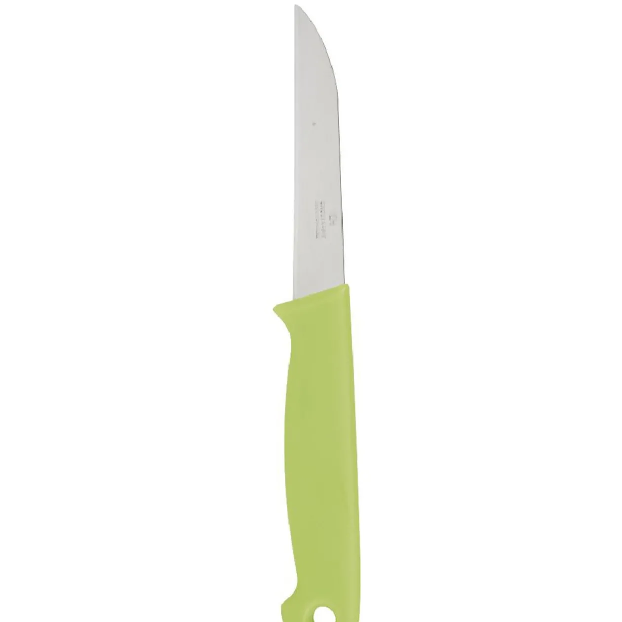 Couteau éplucheur avec manche de couleur rose, vert, bleu et jaune.
