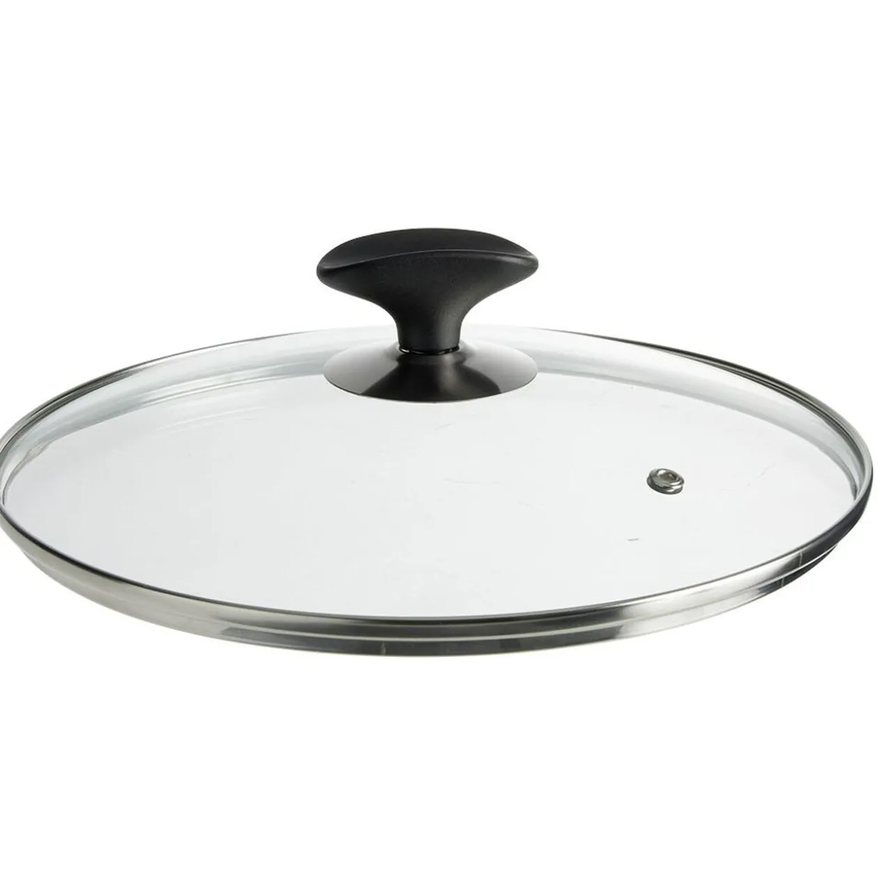 Protégez votre cuisine des projections grâce à ce couvercle anti-éclaboussures en verre trempé de Ø24 cm et doté d’une poignée repose-ustensile en plastique noir.